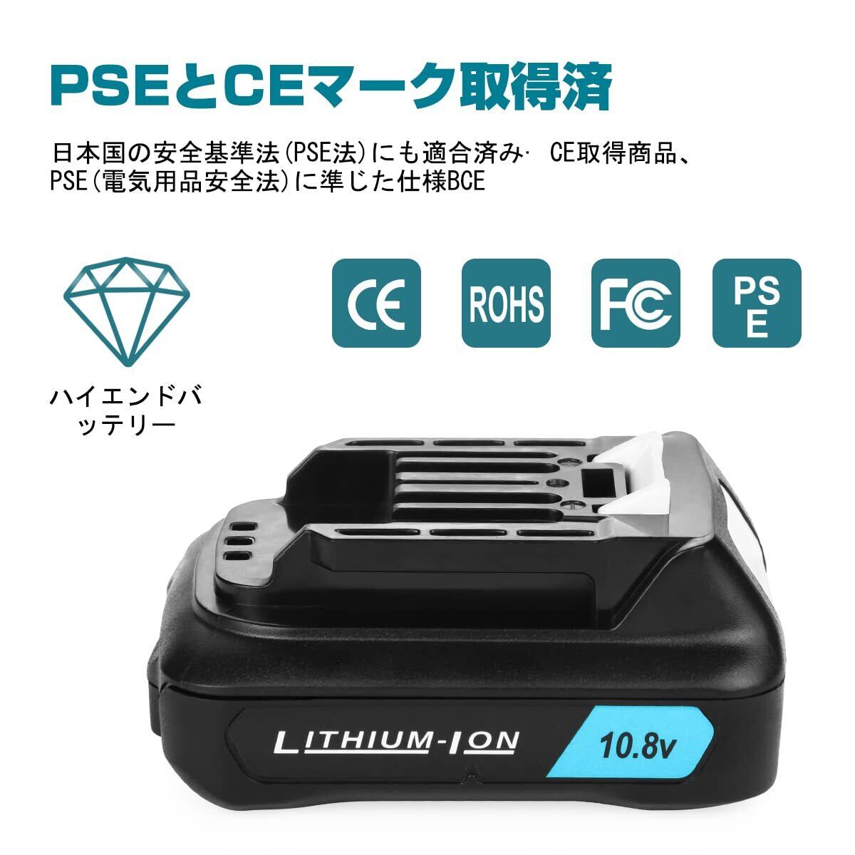 完全互換10.8Vバッテリー:マキタ BL1040 BL1040B BL1015 BL1030B BL1050B BL1041B-2 BL1021B BL1016 BL1060B A-59863など。対応充電器: DC10WC、DC10WD、DC10SA、DC18RE。