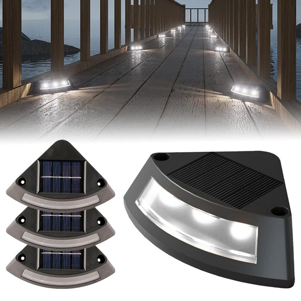 ソーラーライト 屋外 庭 ライト【4個セット】 ソーラー 防水 階段 ガーデン 照明 LED 太陽光充電 自動点灯 玄関 歩道 フェンス デッキ ポーチ 暖色/白色 省エネ おしゃれ 簡単取り付け (白色ライト)