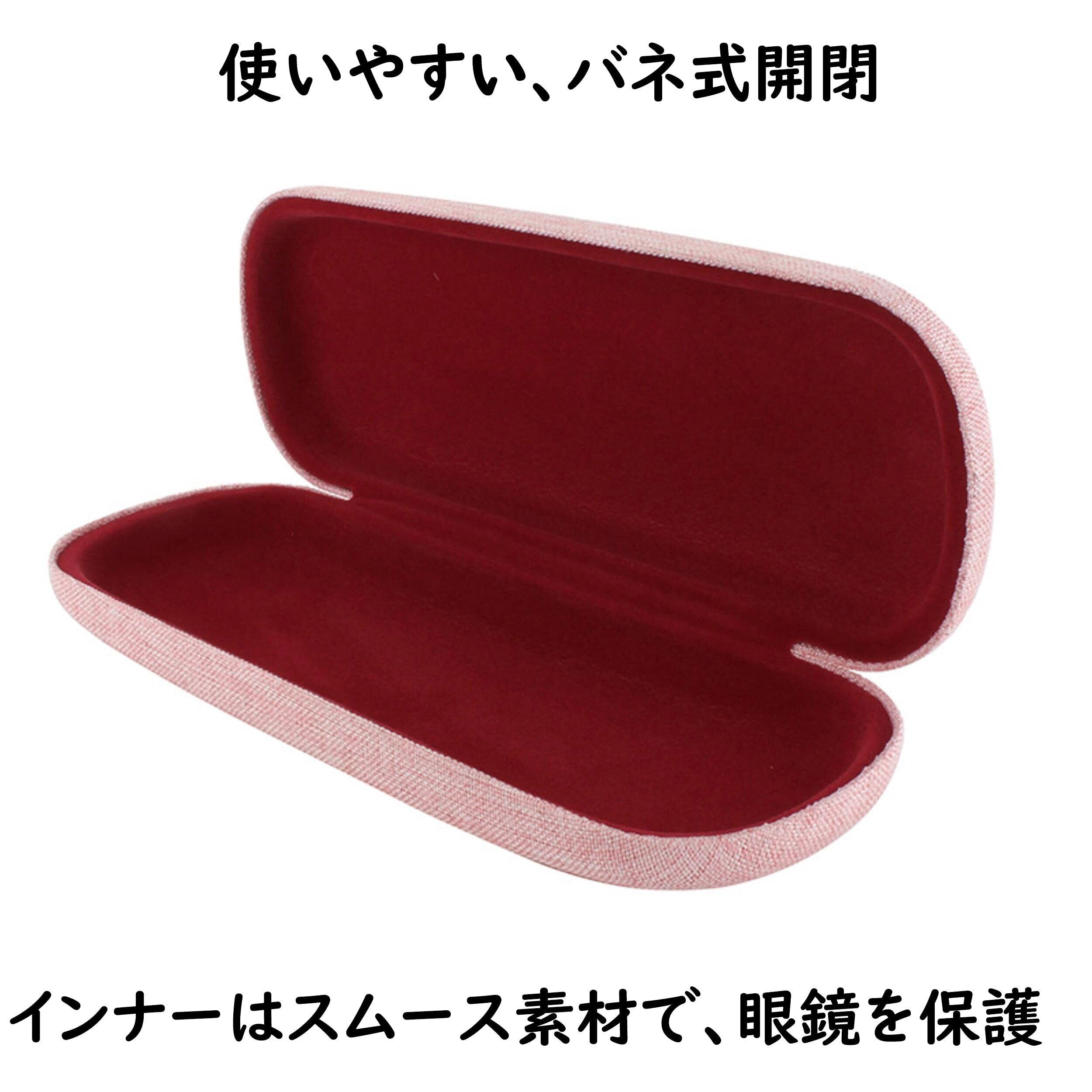 メイガン(Meigan)メガネケース メタル ハード ラウンド コンパクト おしゃれ ファブリック 生地 かわいい ワンポイント 眼鏡刺繍モチーフ メンズ レディース 兼用 ピンク 2235-03