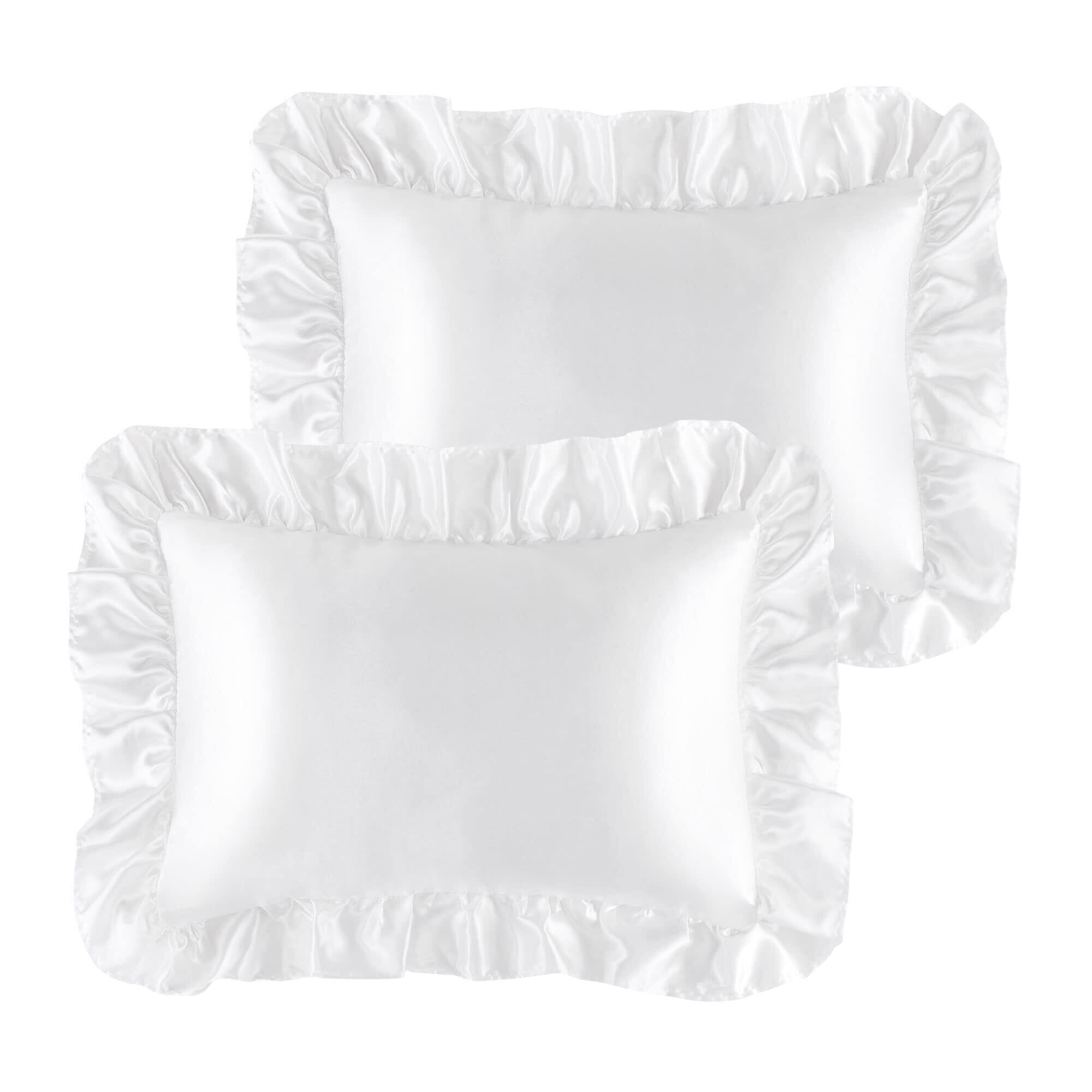 PiccoCasa 枕カバー サテン フリル ひんやり レーヨン 封筒式 接触冷感 ピローケース 2枚 セット シルクみたい柔らかい 両面枕カバー 無地 防臭 美髪 美肌 白い 30 x 40cm