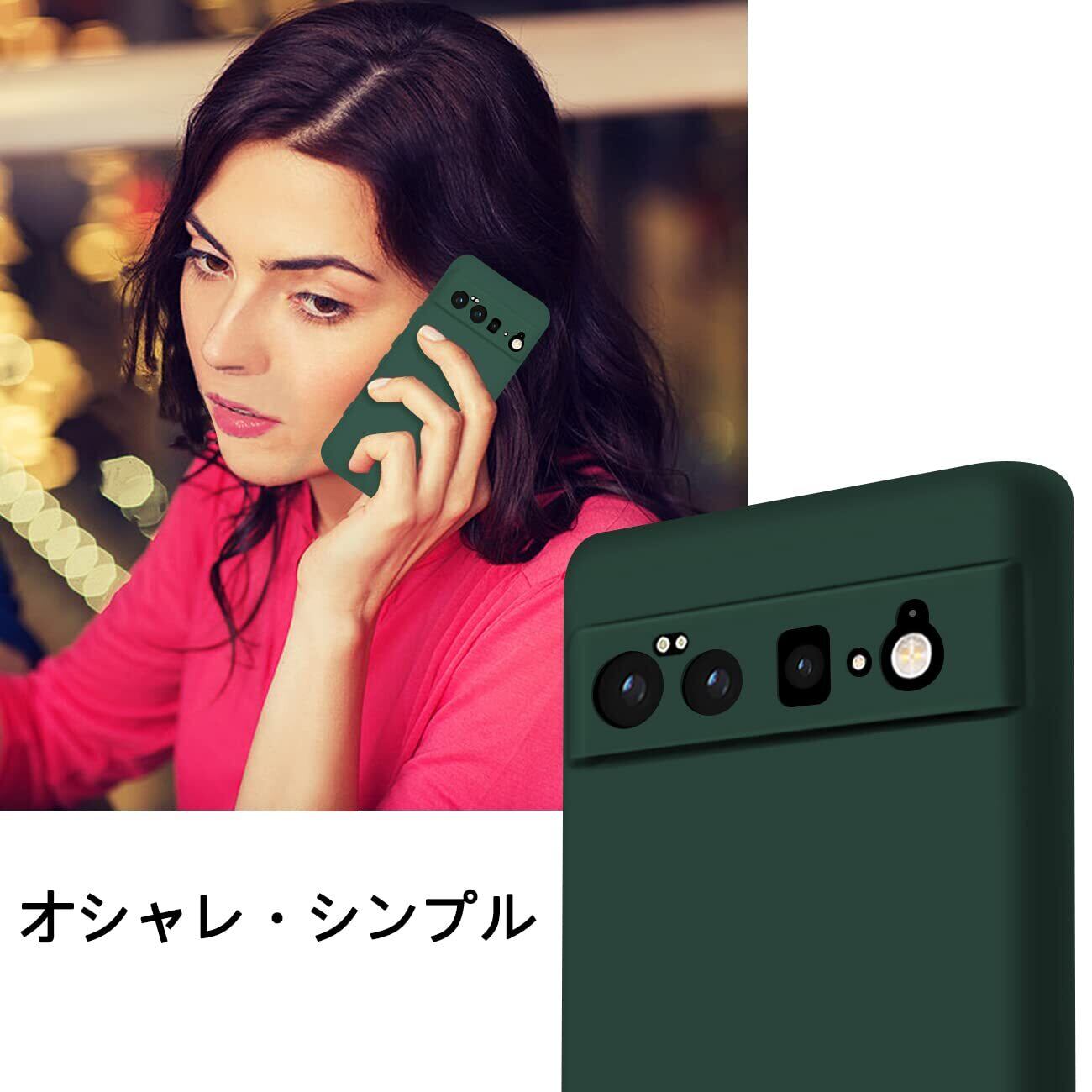Google pixel 6PRO ケース シリコン 耐衝撃 滑り止め スマホケース 米軍MIL規格 SGS認証 指紋防止 カバー グーグル ピクセル 6プロ ケース 衝撃吸収 カメラ保護 携帯ケース ソフト 薄型 ワイヤレス充電対応(ダークグリーン)