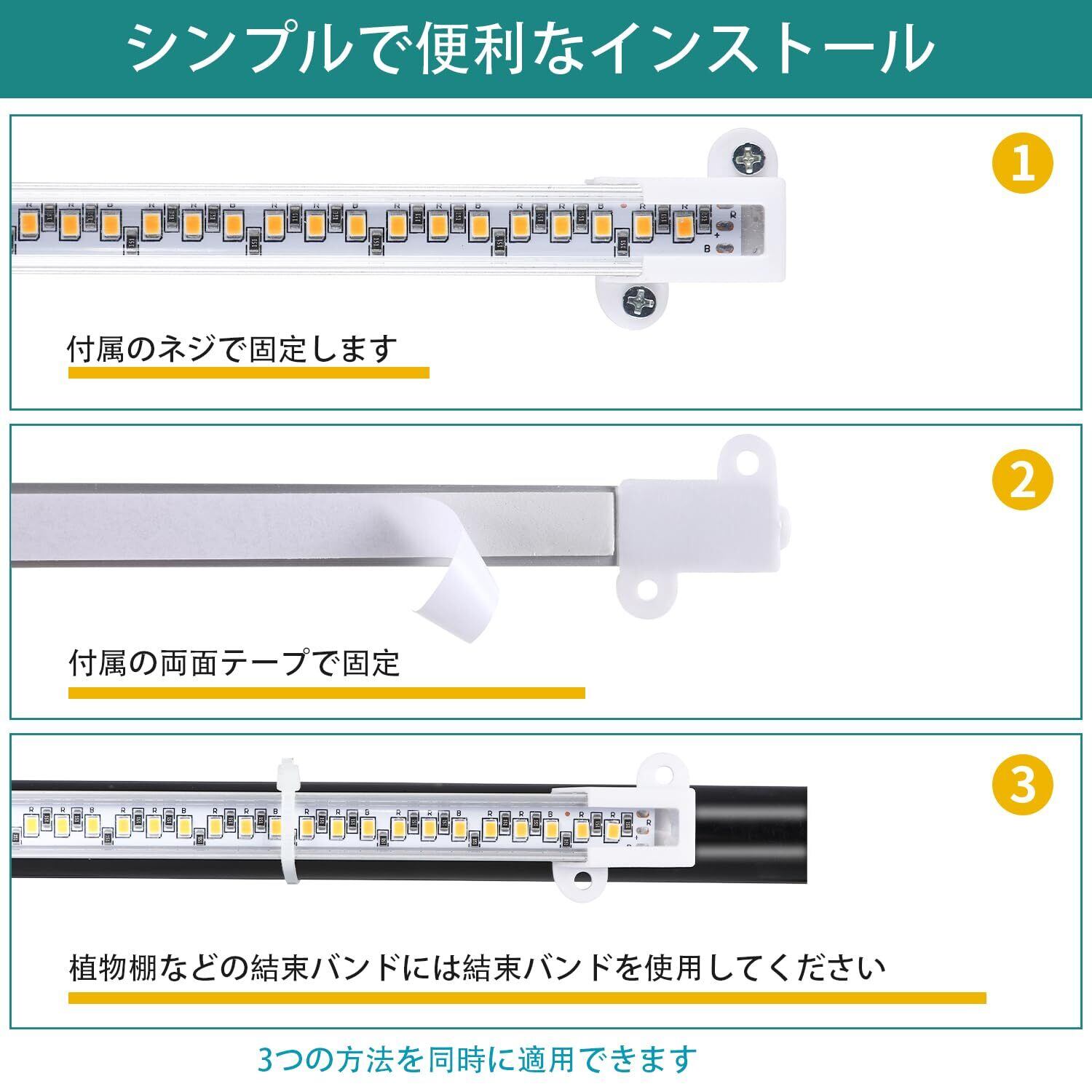 【材質の安全性と簡単な取り付け】すべてアルミニウム素材で、耐腐食性が強く、溶けにくいです。栽培ライトパックには、ネジ、タイ、両面テープが付属しており、3つの取り付けオプションがあります。コンパクトなデザインは、さまざまな器具や表面にフィットします。電源コードの長さは71インチで、オフィス、屋内、植物棚、温室などで簡単に使用できます。
