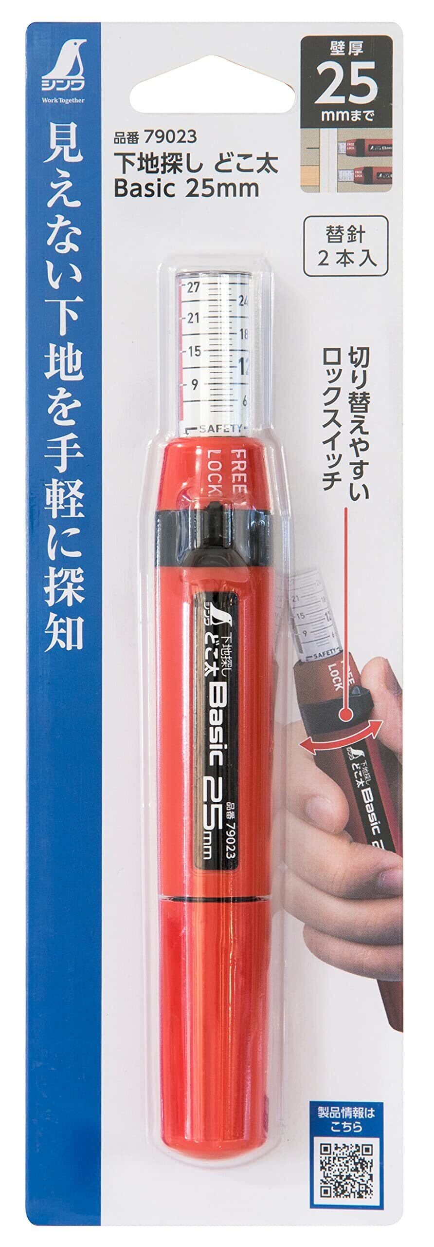 【特価セール】シンワ測定(Shinwa Sokutei) 下地探し どこ太 Basic 25mm 石膏ボード用の針式の下地探し 79023