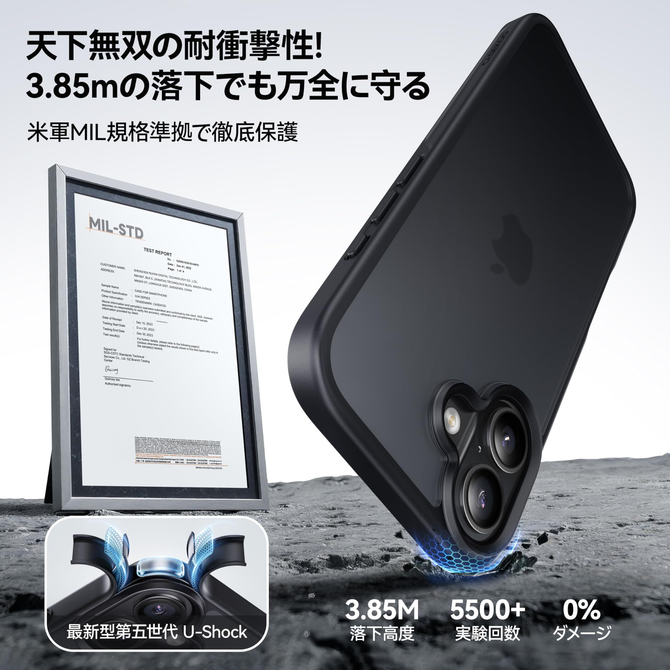 【米軍MIL認証済み・もしもの時も安心】米軍MIL規格「MIL-STD-810G」をクリアした強靭なiPhone 17 用ケース。四隅のU-Shock5.0と三層の耐衝撃構造により、3.85mの高さから5500回、36方向でアスファルトや砂利に落下させてもスマホ本体は無傷!日常使いから旅行まで、どんなシーンでも安心して使える。【365日安心】12時間以内に対応、安心してご購入ください!(購入履歴→購入商品→販売者→質問からご連絡ください)米軍MIL認証番号:GZMR220702237705