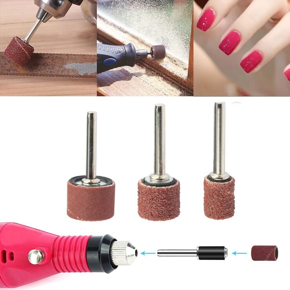 【新着商品】Wolfride 132個セット サンディングバンド ルーターヤスリ 電動ヤスリ 電動ルーター ドリルプレス用 ネイルオフ ネイルビット 180# 120# 80# 研削 研磨工具 木工 ロータリーツール DIY工具 12本3.17mmシャフト付