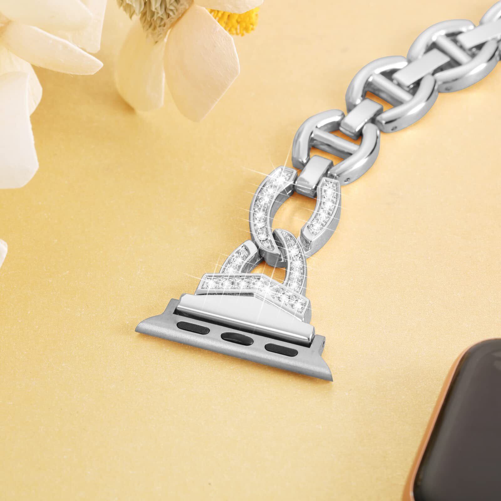 [Daturus] 互換性があります Apple Watch バンド ダイヤモンドラインストーン ステンレス アップルウォッチ ベルト Apple Watch 10/9/8/7/6/SE/5/4/3/2/1に対応 アップルウォッチバンド(銀、42mm(Series 10) /41mm/40mm/38mm)
