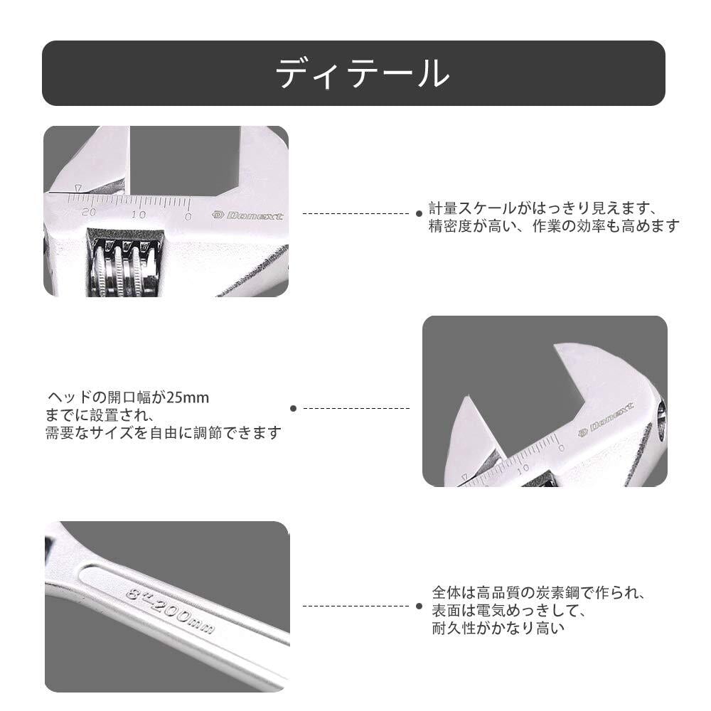 Donext モンキーレンチ 200mm 最大口開き25mm 目盛付 CR-V