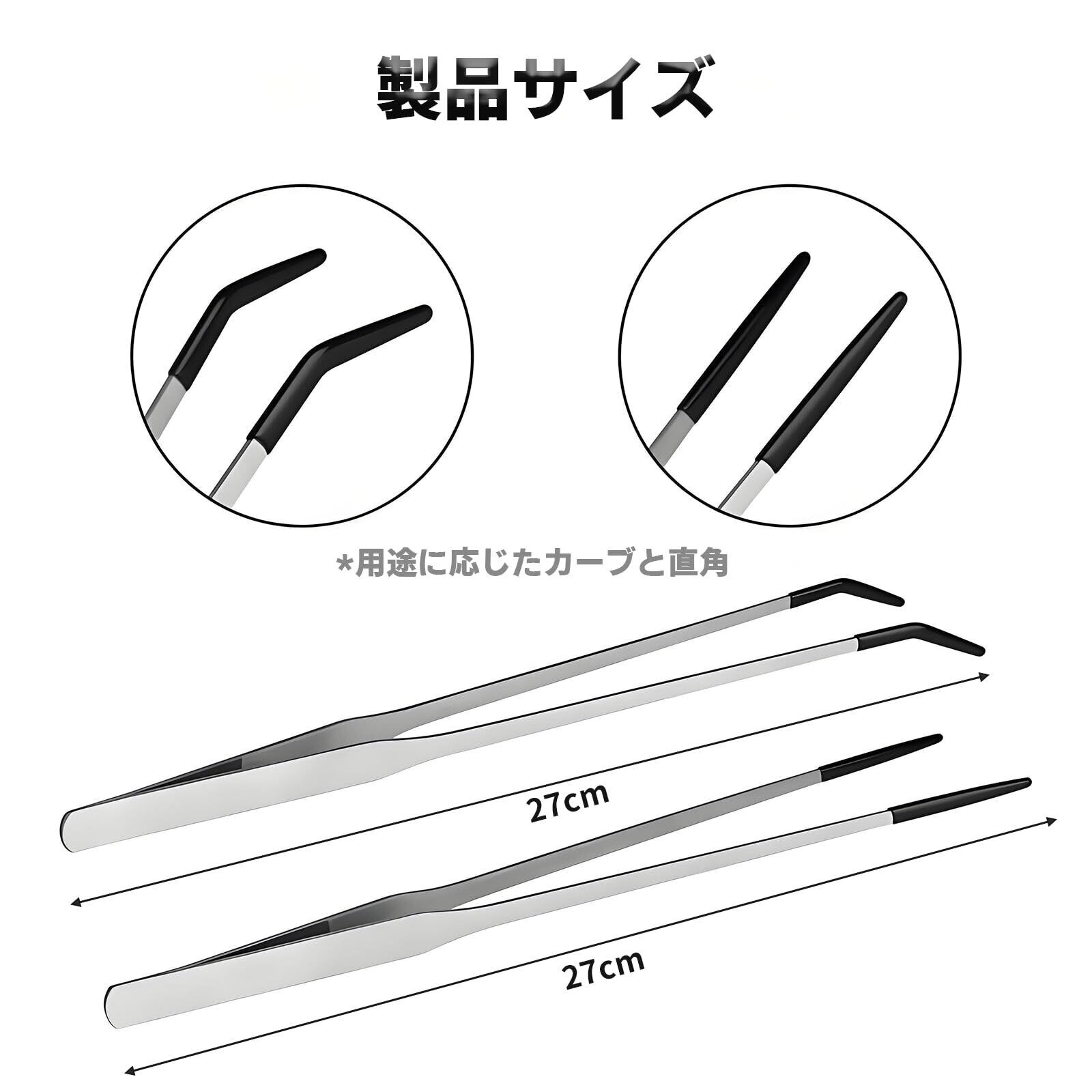 【新着商品】BaraRose 爬虫類 ピンセット ピンセット 長い 10.6 インチ ゴムチップ付きステンレススチール 爬虫類給餌トング 2 個セット ストレート & カーブ 頑丈エクストラロングピンセット 蜥蜴・トカゲ・ヘビ・カエル・昆虫用給餌ツール 水槽・水族館・テラリウム・クレステッドゲッコータンクアクセサリー 実用的ペット用品 | allstore2