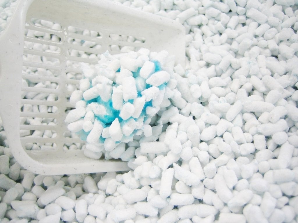 再生パルプを主原料とした固まる紙製猫砂です。濡れた部分がブルーに変わり、汚れをトイレ内に残しません。