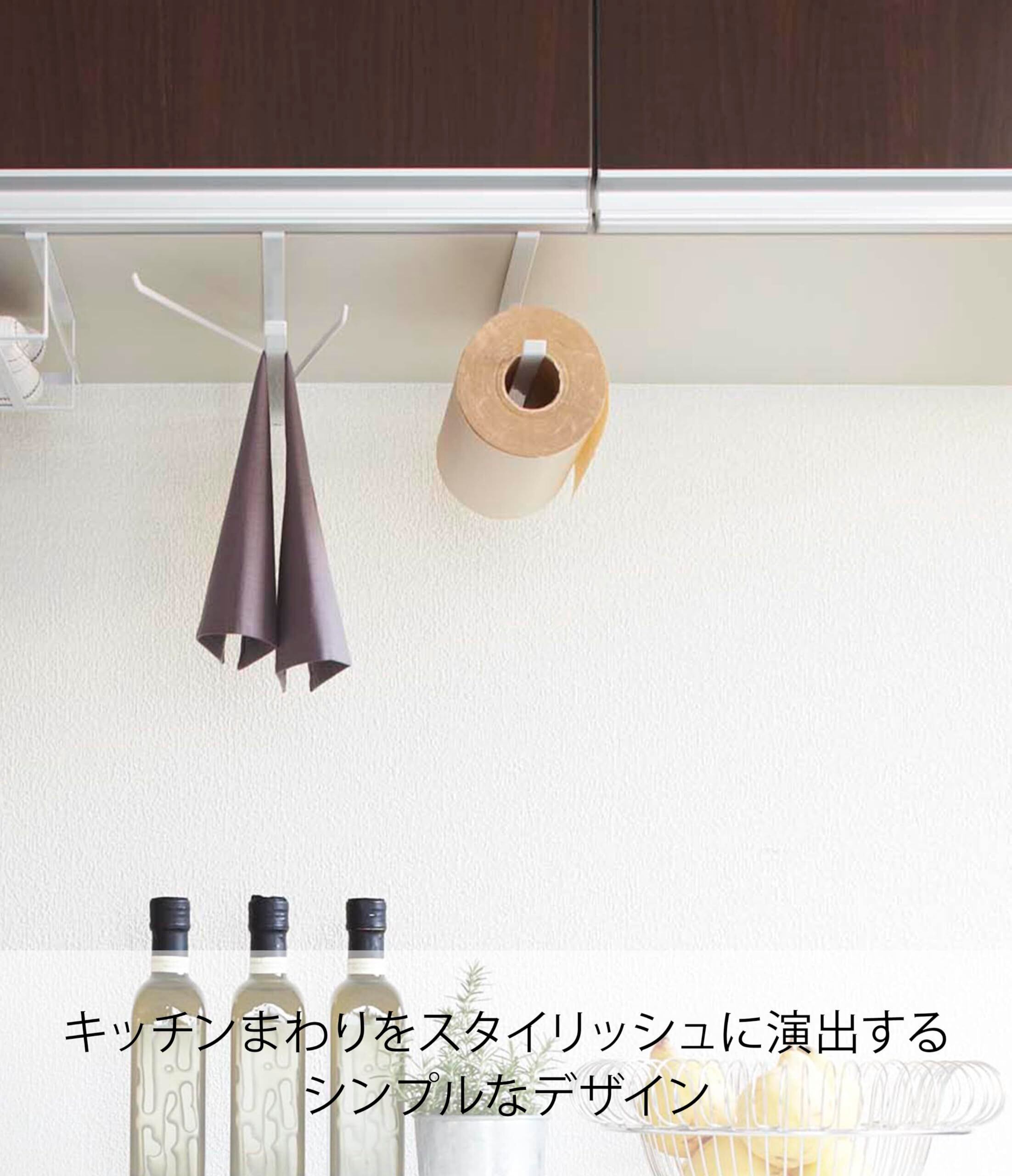 よく使うキッチンペーパーは、調理スペースのすぐ上でスタンバイ。しっかり固定できるのでカットしやすく、料理の効率もアップ。サイズ:約W1.5×D26×H9.5(cm)重量:約225g素材:本体:スチール(粉体塗装)その他:※耐荷重:約500g※取り付け可能な吊り下げ戸棚:1.4~2cmまでに対応