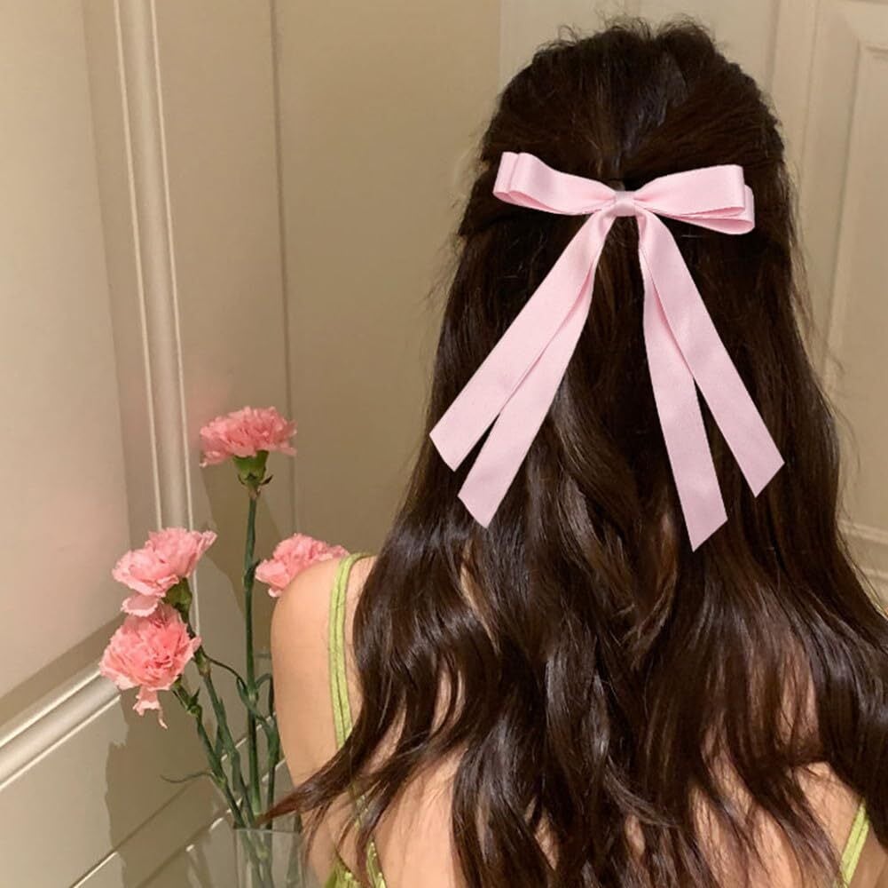 【シンプルで使いやすい】:クラシックな弓要素のデザインは非常に繊細でエレガントです。 髪に長いテールリボンを付けると、よりエレガントで魅力的に見えます。 さまざまなシーンや日常使いに適しています。