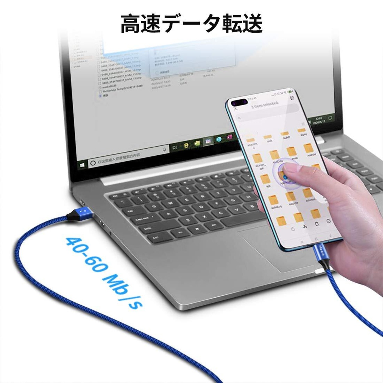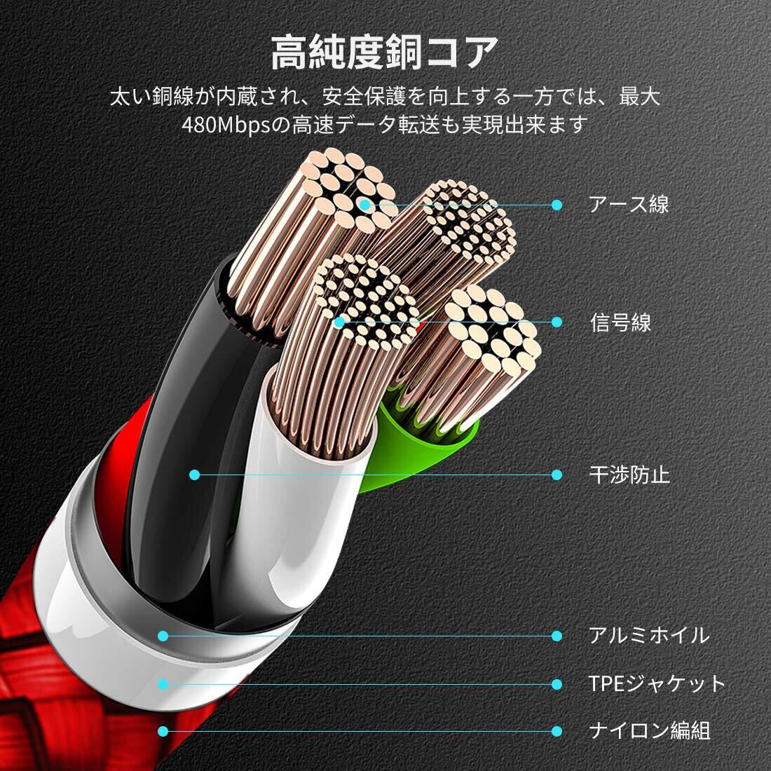 【急速充電とデーター同期】このたいぷcケーブルは最大3A電流(Quick charge 3.0対応)の出力により、安定してフルスピードで充電をご提供しております。また、USB 2.0基準、高速データ転送(最大480Mb/s)が可能でき、映画、ファイル、曲などを素早く転送し、お客様の貴重な時間が大幅に節約できます。