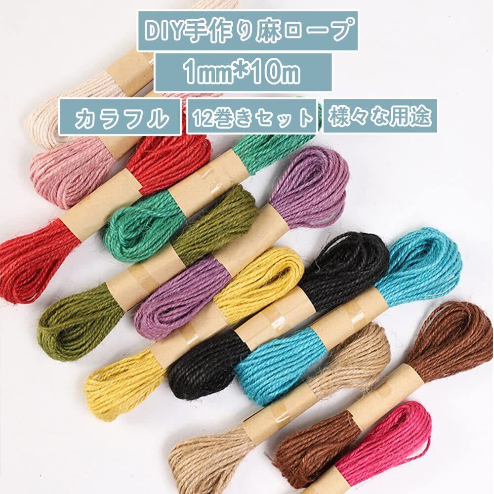 【2022最新】Dekori 麻ロープ カラー麻紐 ジュートロープ 手編み用 手芸用 装飾用 ギフトラッピング 多機能 DIY用 手芸用品 直径1mm 麻ひもアクセサリー用紐 ギフト ラッピング紐 梱包ロープ 12巻セット カラフル(12巻きセット) | allstore2