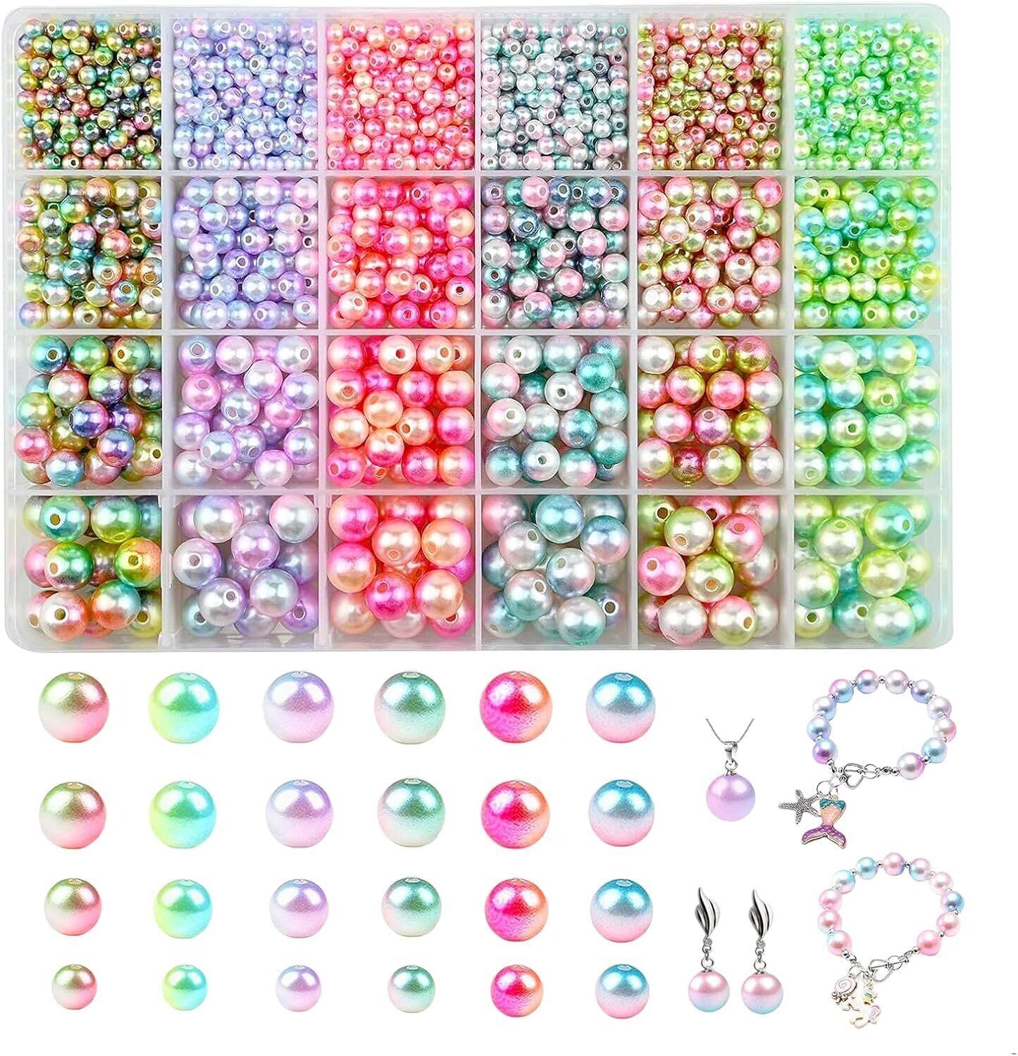 Meschett 1890Pcsパールビーズ、4/6/8/10mm 6色マルチカラーパールビーズジュエリー作成用の穴のある工芸品用ルーズパール、ブレスレットネックレスイヤリングを作成するためのラウンドビーズ