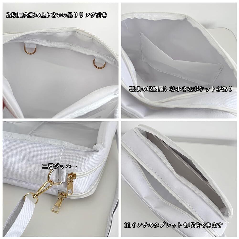 【用途】収納・装飾・外出用のバッグ。携帯、缶バッジ、イヤホン、充電器など、ぬいぐるみ、萌グッズ、好きな芸能人やアニメキャラの写真、ストラップなどが収納できます。デイリー使いはもちろん、イベント・旅行・遠足・コンサート・お出かけにも活躍。