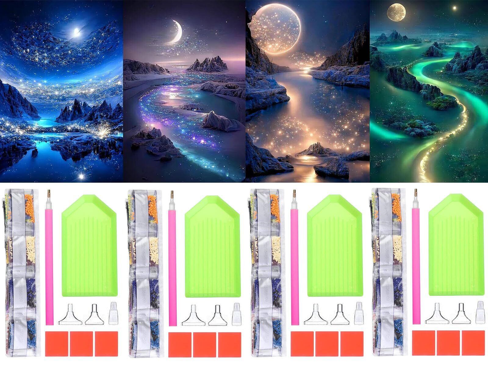 4個セット ダイヤモンドアート キット,BetterJonny 5D ダイヤモンド キットアート壁アート ダイアモンドビーズ絵画キット 手作り絵画手芸キット 全面貼り付けタイプ DIY 手芸キット初心者 大人 子供 30x40cm 星河