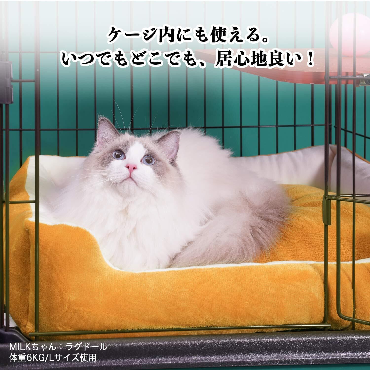 インテリアに馴染む見た目。◆多サイズ対応。S、M、Lサイズあり。多頭飼いの場合にもOK。Lサイズは仲の良いネコ同士が一緒に使える。◆ペットちゃんの好きな場所に設置可能。スクエア形だからお部屋の隅にも置きやすい。ケージ内にも使える。いつでもどこでも、居心地良い!