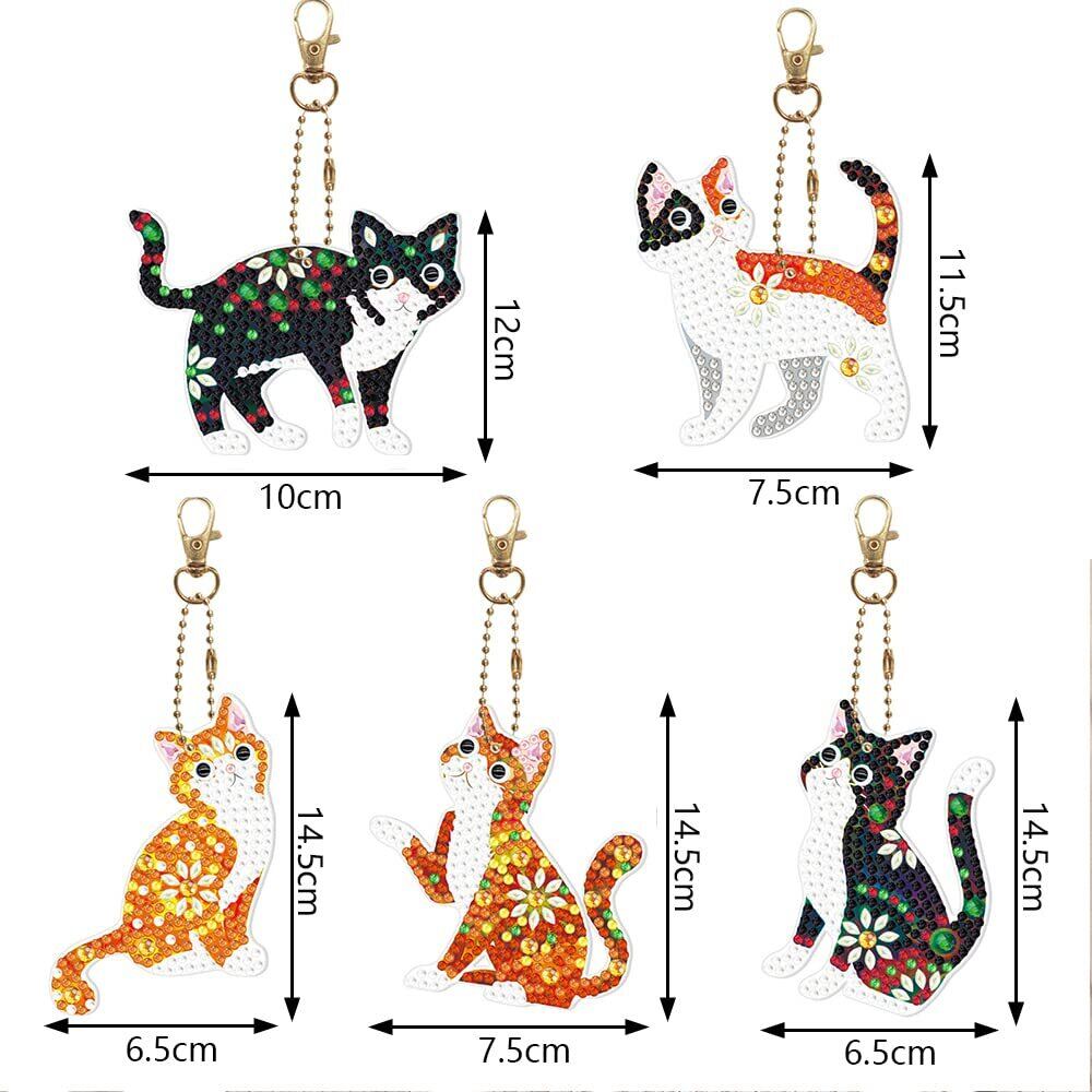 ダイヤモンドアート ペンダント キーホルダー 5個入り DIY 手工芸品 手作り ダイヤモンド塗装 かわいい 初心者でも楽しめる プレゼント (ねこ)