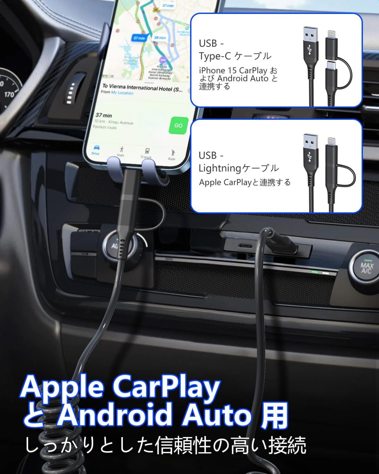 特徴 Apple CarPlay および Android Auto に対応, usb-c + lightning 2-IN-1, タングルフリー, データ転送, 高速充電