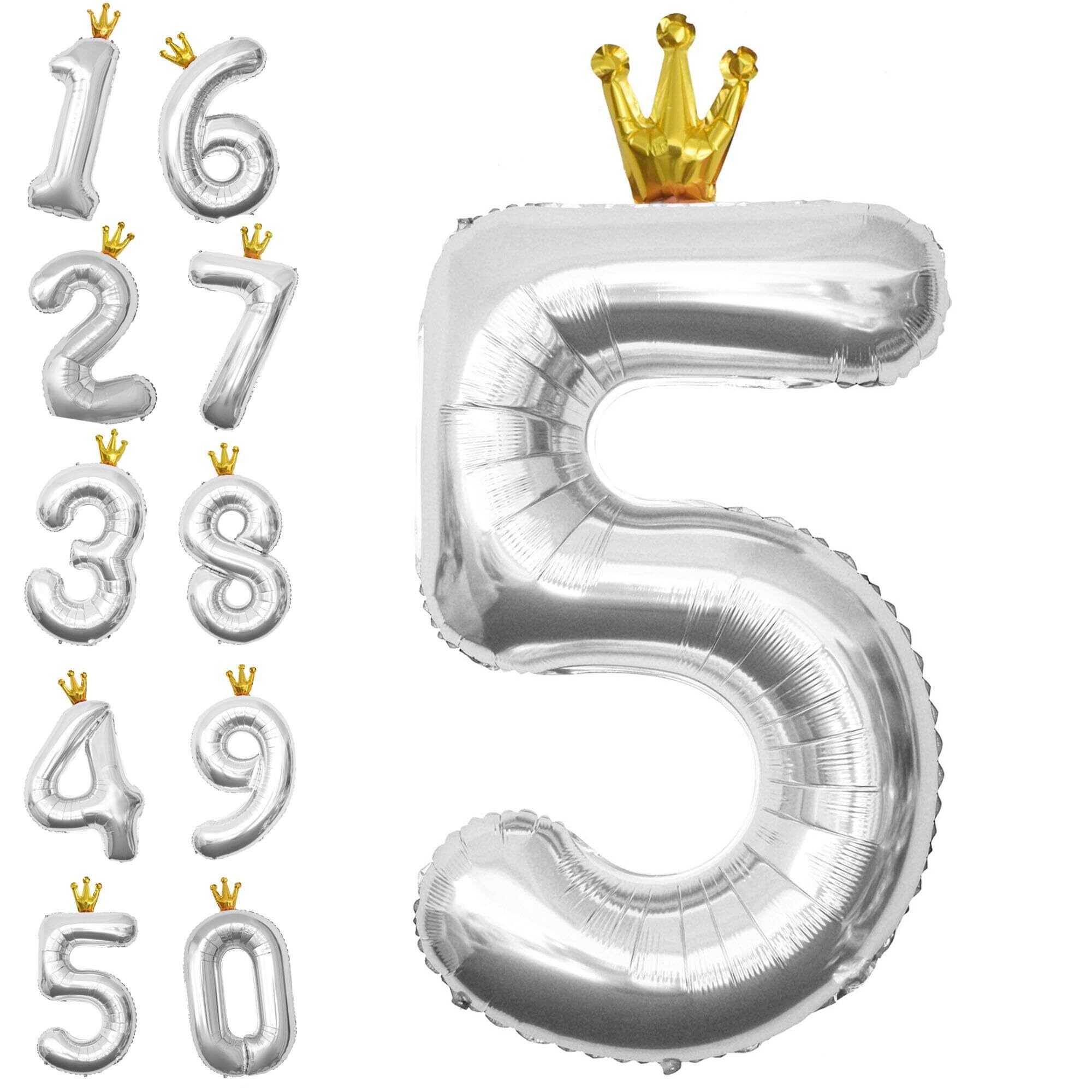 DELUXEFOX 誕生日 バルーン 数字 大きい 40インチ 5歳 誕生日 飾り付け バルーン 誕生日 数字 風船 女の子 男の子 大人 王冠付き 飾り付け 結婚式 パーティー 記念日 ウェディング (銀)