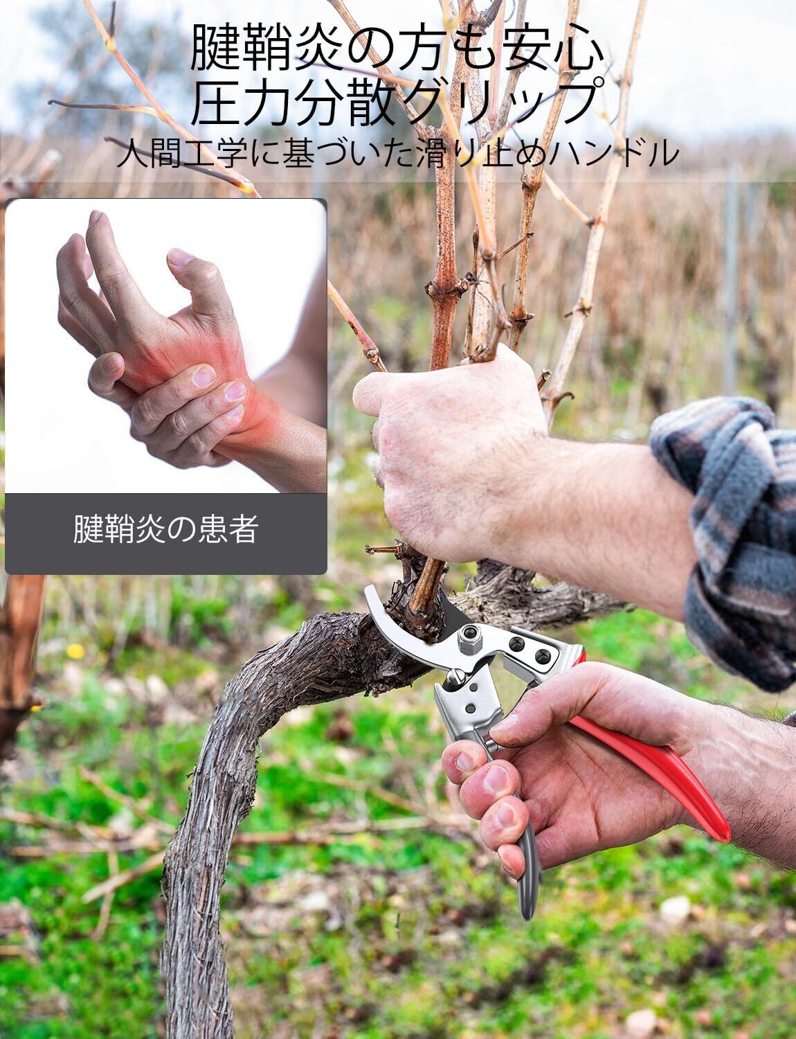 【日本SK5鋼&ドイツ技術で鋭利】高品質SK-5高炭素鋼を採用した剪定ばさみ・剪定バサミで耐久性6倍。ドイツ技術による精密加工で切れ味5倍向上。弧形刃は超精密研磨され、枝切りばさみ・花切りバサミとしても植物を傷めず長く使えます。