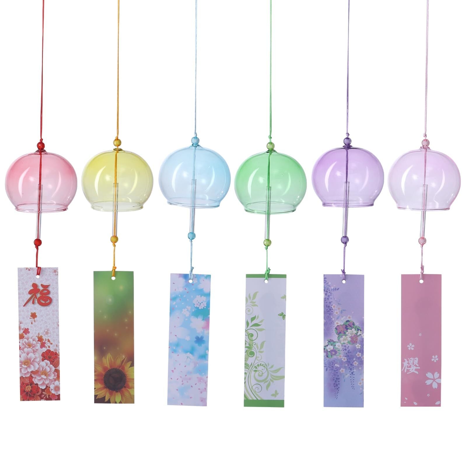 【2022最新】風鈴 手作り風鈴 4点セット ガラス 江戸 癒しの音 涼しい感じ 夏の風物 幸運 夏の風物詩 カラフル おしゃれ インテリア おみやげ 雰囲気作り 屋根飾り ギフト 贈り物 インテリア 和風 短冊付き (レッド+イエロー+ブルー+グリーン+パープル+ピンク)