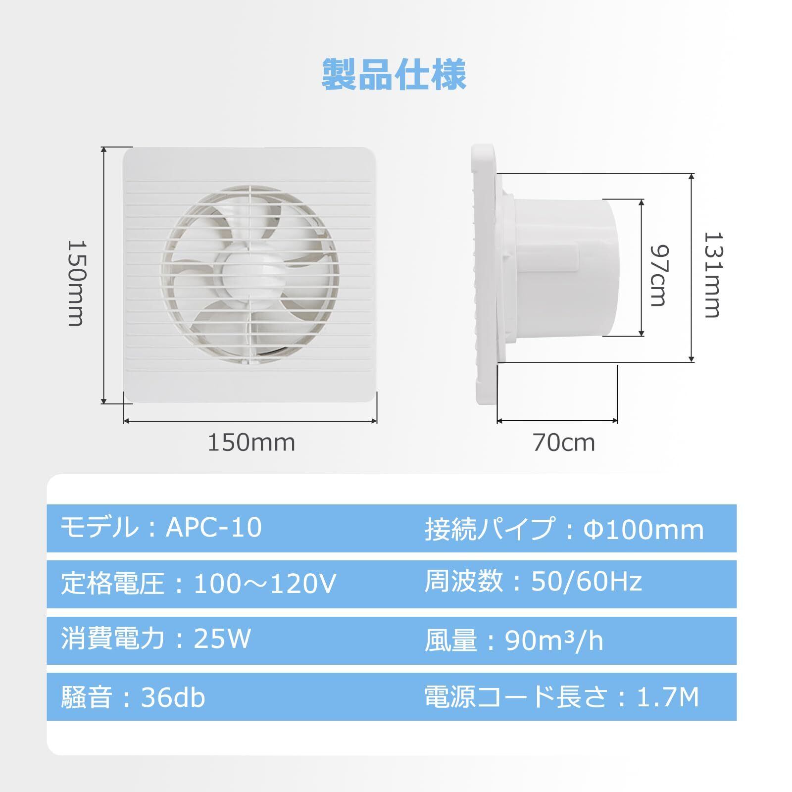 【幅広い用途・換気扇適用面積】壁用換気扇、浴室換気扇、トイレ換気扇、キッチン換気扇、窓用排気扇としてはおすすめです。換気扇適用面積:本製品風量は90m³/h、一つ換気扇は5㎡の空間利用可能です。