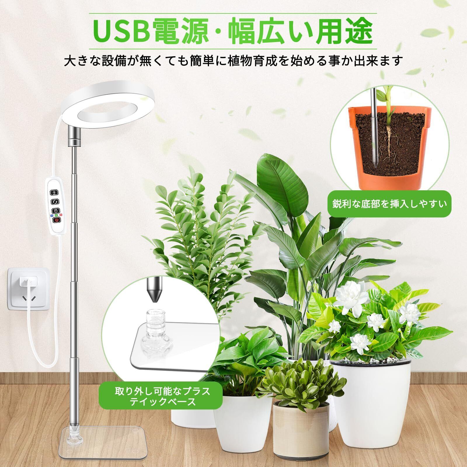 Modfied 植物育成ライト 観葉植物 ライト 室内栽培 定時機能(3H / 9H / 12H)調光 高さ調節可能 省エネ 低消耗 USB給電 苗木栽培 家庭菜園 水草栽培 園芸用品 (ホワイト, 1個)