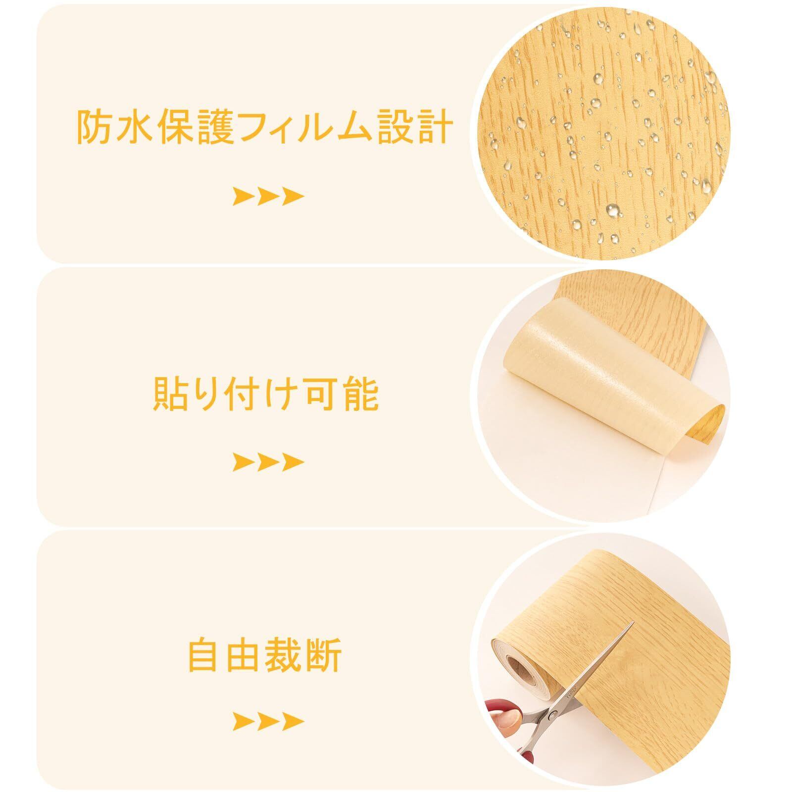 【防水防汚】リメイクシート 木目は高品質のPVC素材を使用し、防水保護フィルム設計で、表面は汚れにくいです。汚れても湿ったタオルで拭くだけで簡単にきれいになります!耐久性に優れ、不要になったらすぐに剥がせます!