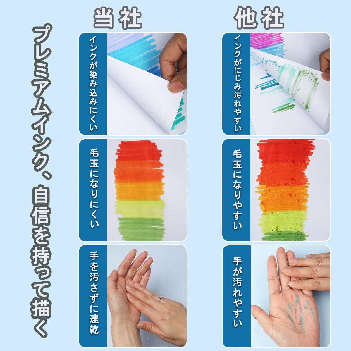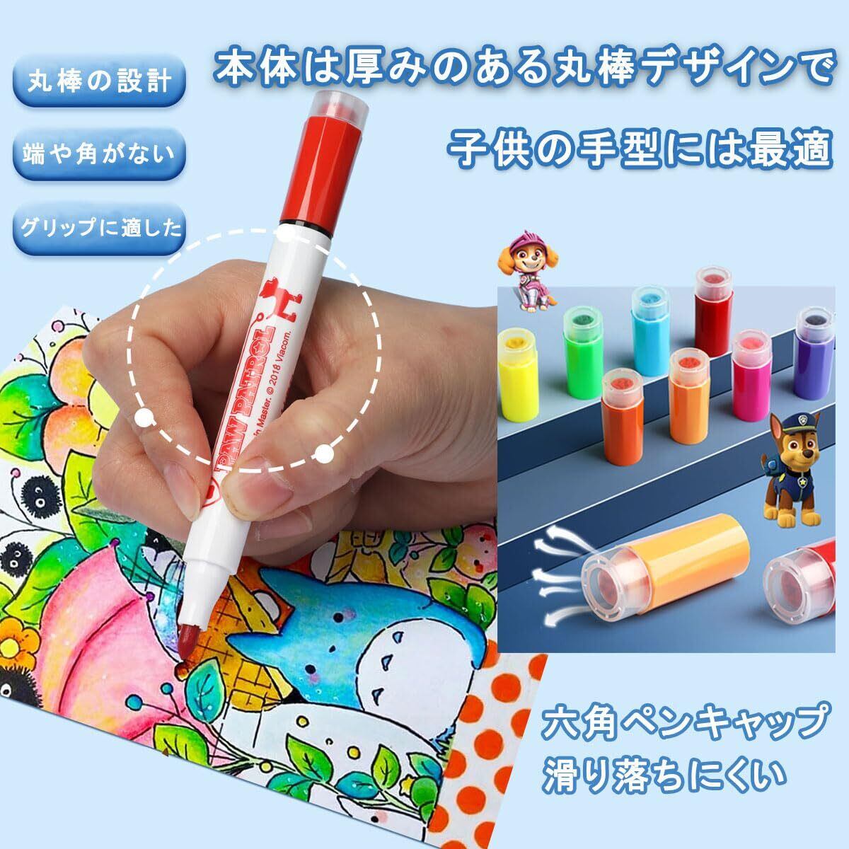 【貼り付け簡単、握り心地】丸いペン本体で作られています、人間工学に基づいた握りやすいデザインで、長時間使用しても指が疲れません、新デザインのペンはとても塗りやすく、キャップを開けてペンを使用するだけです。インクの量が豊富なので、長くお使いいただけます。