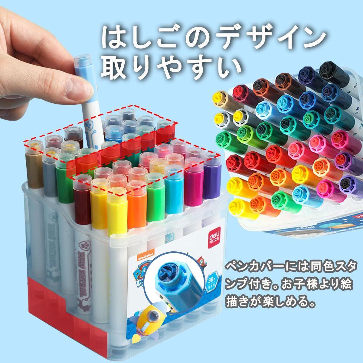 DELI 水性ペン 24色 アートマーカー 子供用の太い丸ポール 漫画シールキャップ スムーズな色の塗布 手を汚さずに速乾 ウォッシャブ カラーペンセット (24色セット)