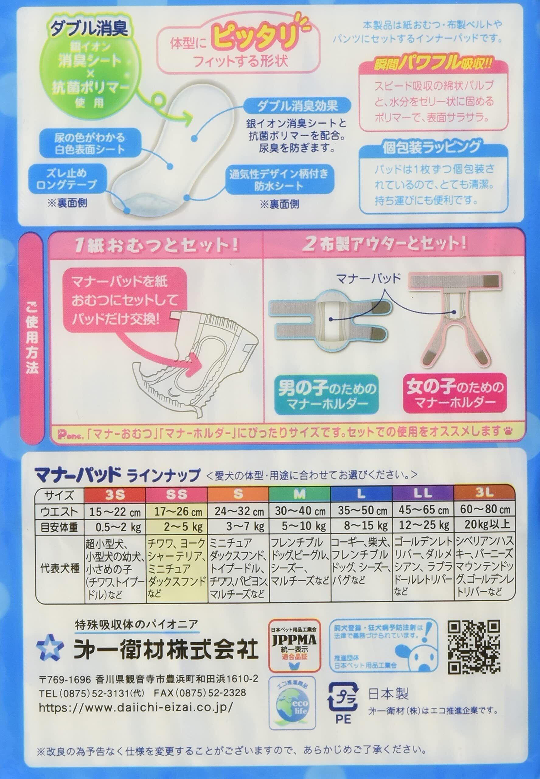 おしっこを瞬間パワフル吸収! 愛犬の生理・マーキング・おもらし・介護のほか、お出かけ時のマナーなど様々なシーンで大活躍の「マナーパッドActive」のお徳なビッグパック。銀イオン消臭シートと抗菌ポリマーの力でニオイ対策も安心。専用(別売)のマナーホルダーActiveや、マナーおむつとの併用で衛生・経済的にご使用頂けます。
