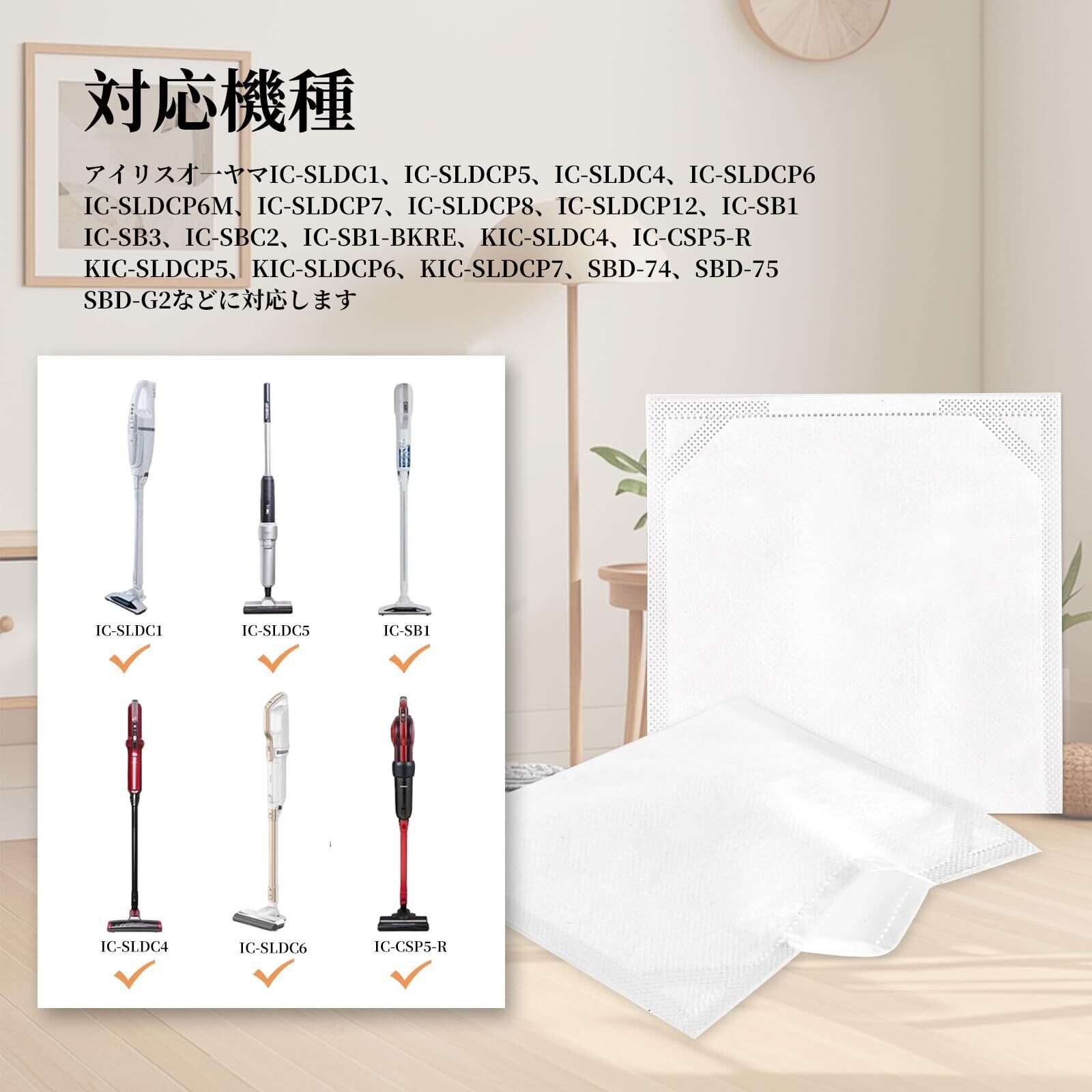 【対応機種】:アイリスオーヤマ掃除機用交換紙パック IC-SLDC1、IC-SLDC4、IC-SLDCP5、IC-SLDCP6、IC-SLDCP6M、IC-SLDCP7、IC-SLDCP8、IC-SLDCP12、IC-SB1、IC-SB3、IC-SBC2、IC-SB1-BKRE、KIC-SLDC4、IC-CSP5-R、JCL18、KIC-SLDCP5、KIC-SLDCP6、KIC-SLDCP7、KSC-1300G、SBD-74、SBD-75、SBD-G2Hなどのスティッククリーナーに対応します。