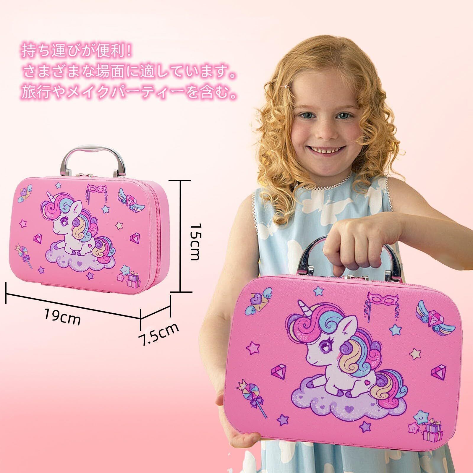 【持ち運び便利】この子供メイクボックスはサイズが約19×15×7.5cmで、とても持ち運びやすいです。旅行やメイクパーティー、プリンセスごっこなど、さまざまなシーンで必要なメイク道具がそろっています。