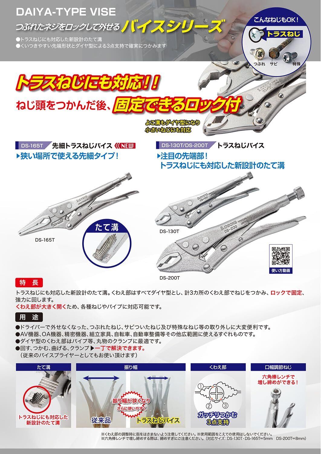 バイスプライヤー型は、ねじ頭をつかんだ後、ロック(固定)できるので強力に回すことが可能!