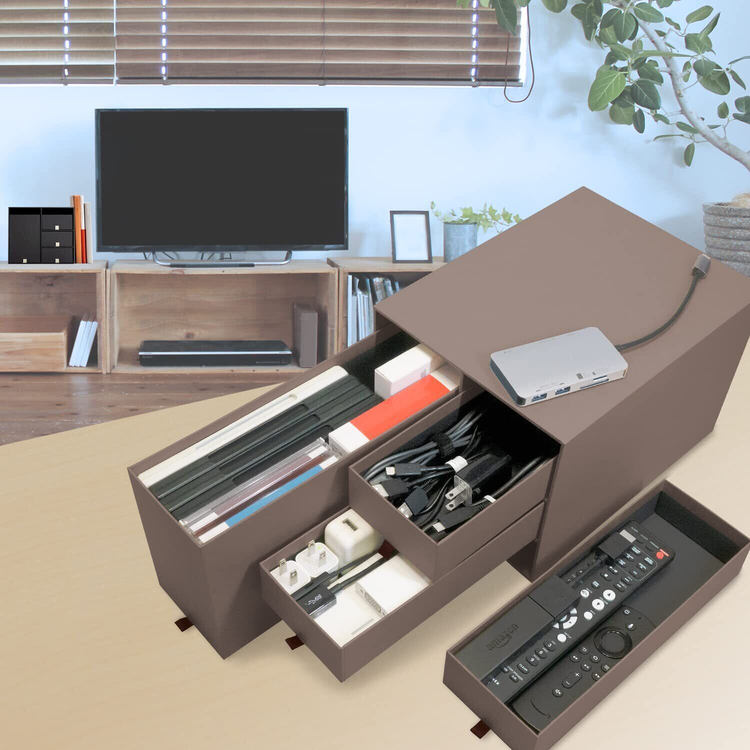 【新春セール】プラス デスクオーガナイザー 小物入れ 収納ボックス 収納ケース 引き出し 化粧品 リビングポスト ブラウン Lサイズ LP-304YL 85-135