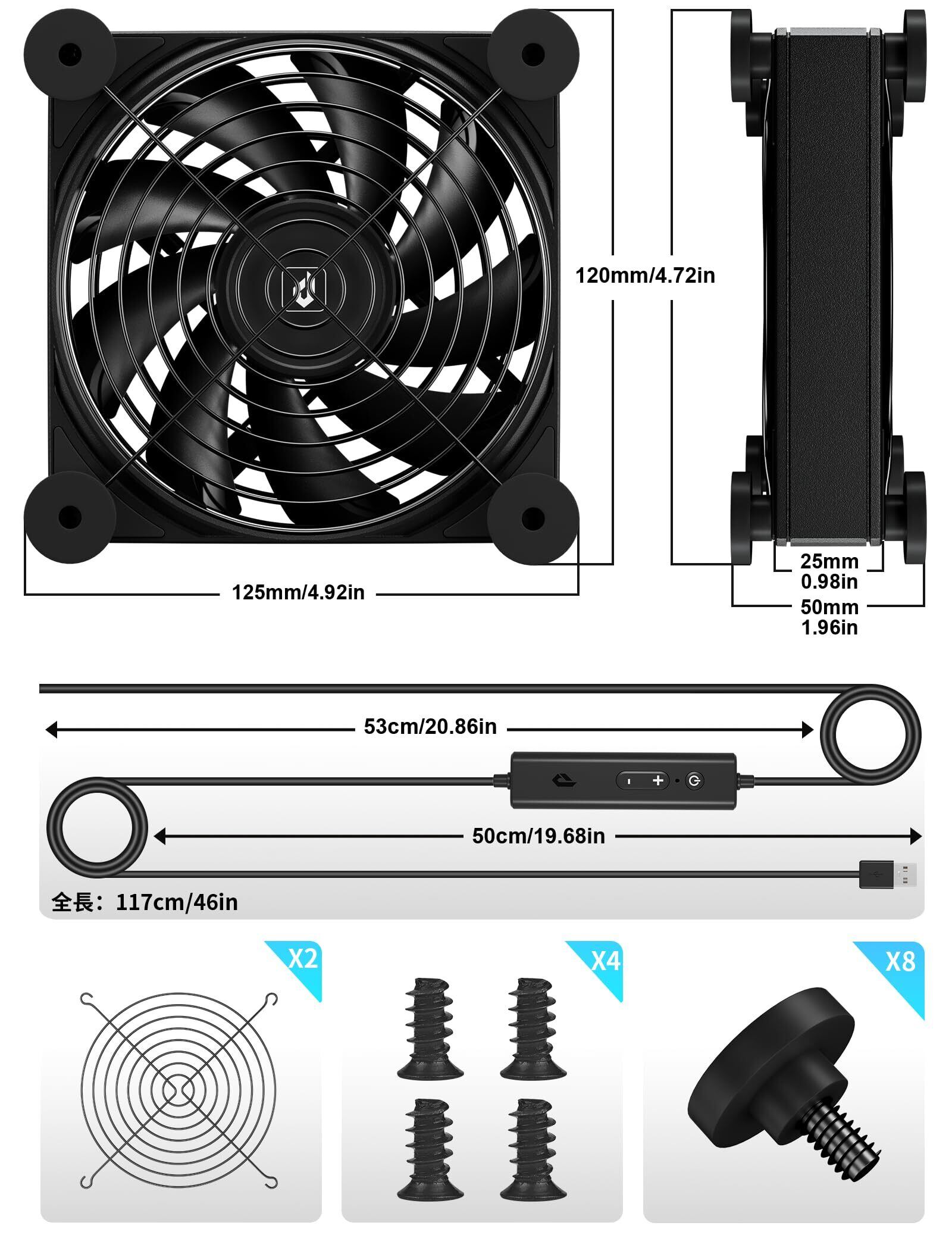 【安心長期に使用でき】冷却ファンの両側に金属製ファンガードが装着済み、指が入らず、持ちやすくなり、ケーブルなど異物の侵入も防止できます。 シリコン製の緩衝パッド付きで、音や振動を抑えるだけでなく、滑りにくさも兼ね備えています。使用の必要に応じて、平置きまたは直立することができます。また、付属のネジとナットはさまざまな使用シーンに対応しており、貴重な設備を全面的に保護します。