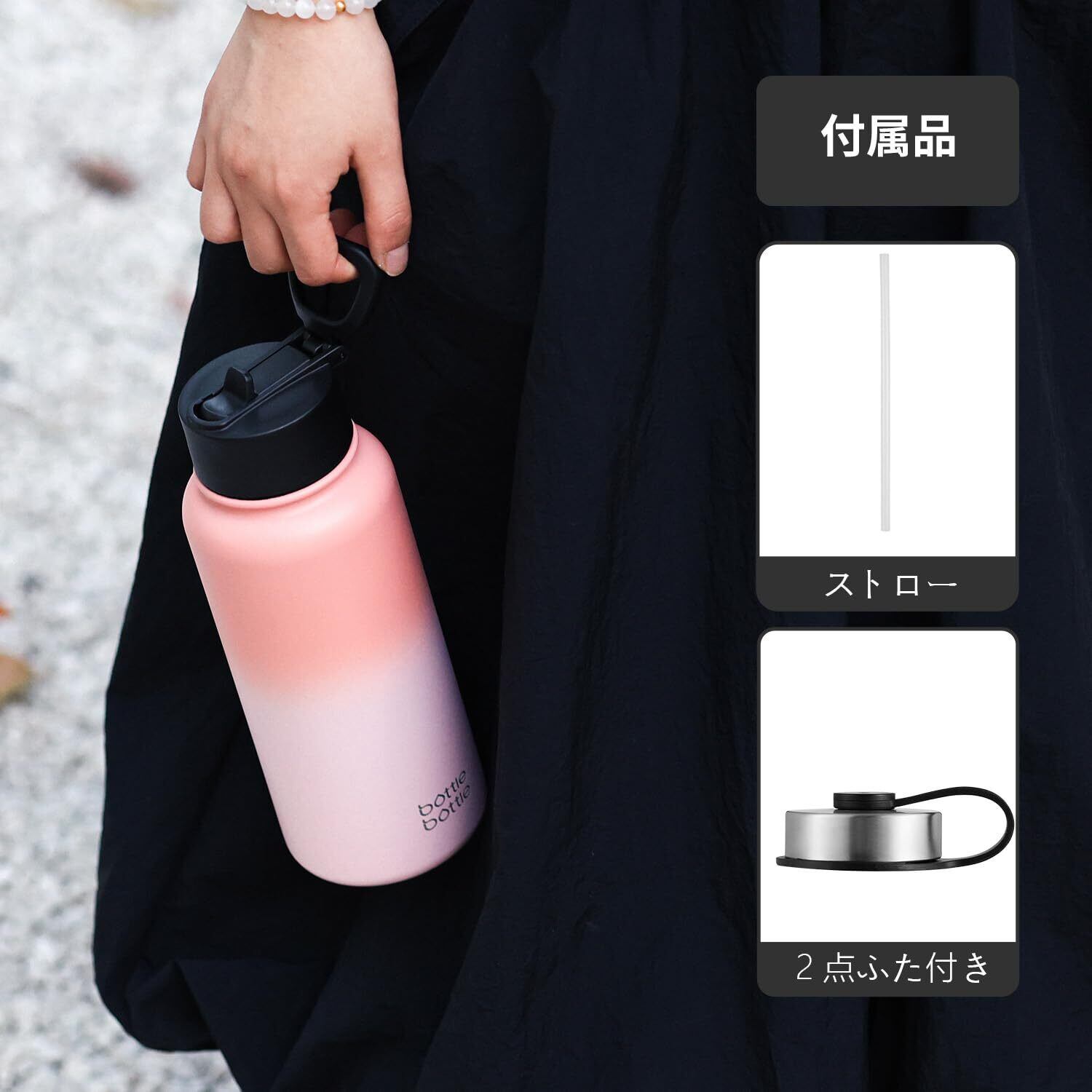 【数量限定】BOTTLE BOTTLE 1リットル 水筒 ステンレス ウォーターボトル 女の子 直飲み ストロー付き 保温保冷 二重構造 真空断熱 持ち運び スポーツ アウトドア ピンク