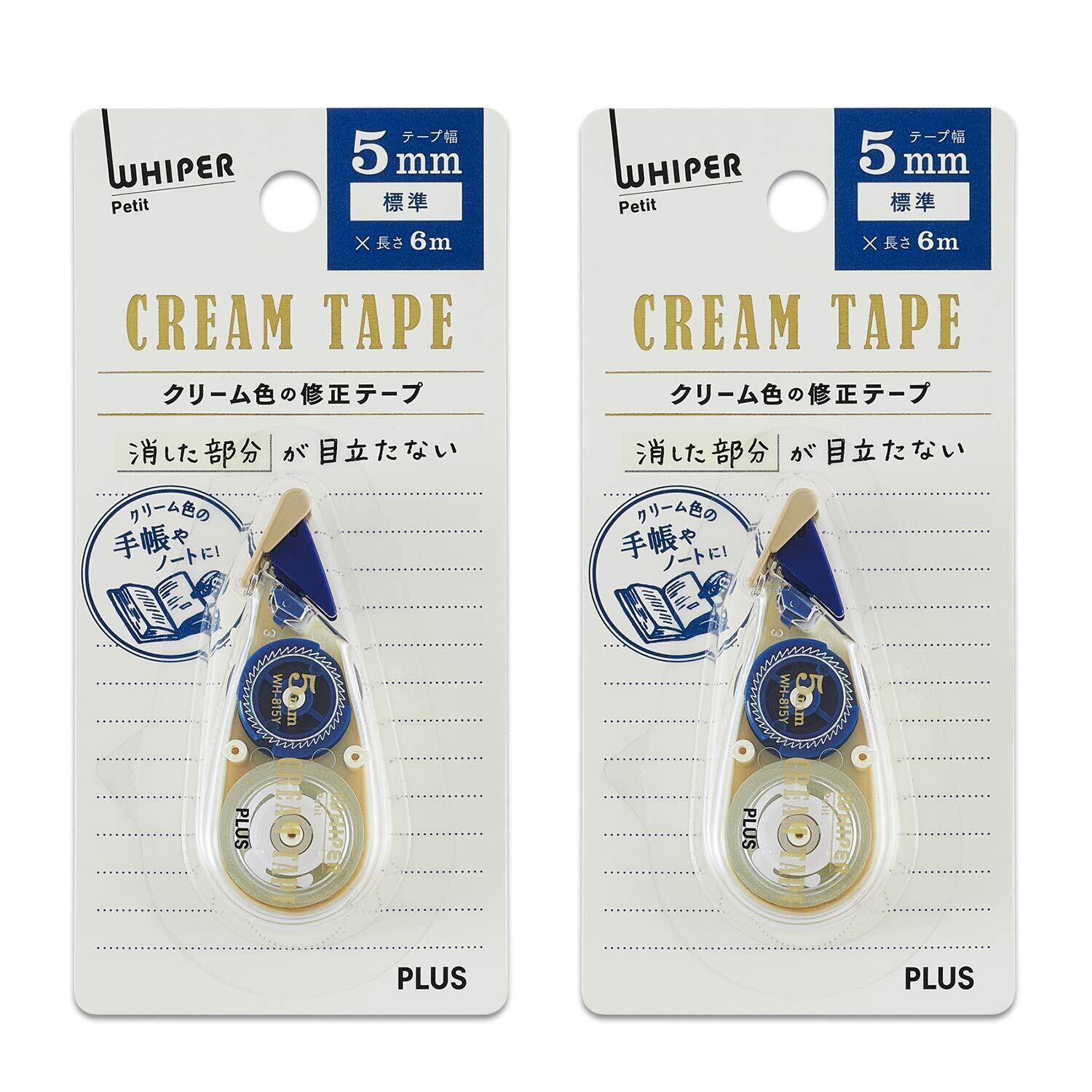 【数量限定】プラス 修正テープ ホワイパープチ クリームテープ 5mm WH-815Y 51-643 ×2