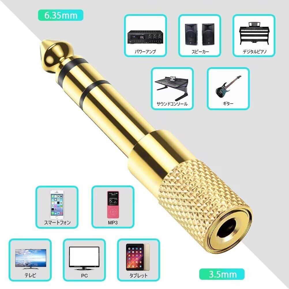 Liroyal 3.5mm-6.35mm 変換プラグ ステレオミニプラグ 【5個セット】 変換 ステレオ標準プラグ 金メッキ 3.5mm ⇒ 6.35mm アンプヘッドホン変換
