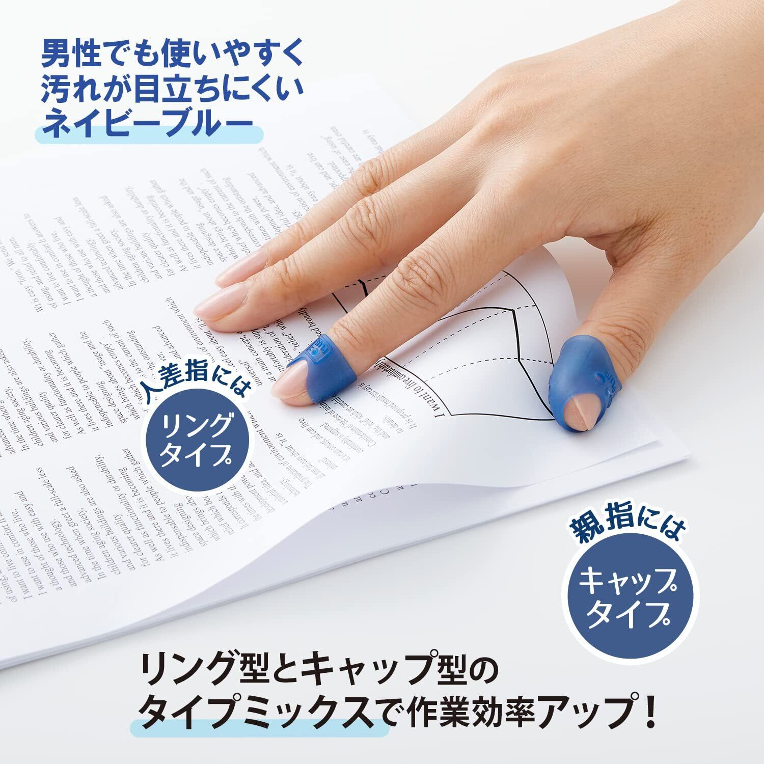 PLUS 紙めくり 指サック メクリッコキャッチL タイプミックス (リング型 キャップ型) 各12個 計24個 ネイビーブルー KM-403CAR 35822 Lサイズ