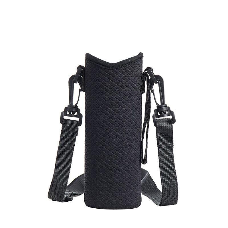 Samlyru 水筒カバー ショルダー 750ml 1L 保冷保温 マイボトル 肩掛け 手提げ 水筒ポーチ 学校/通勤/旅行 持ち運び (ブラック, 750ml)