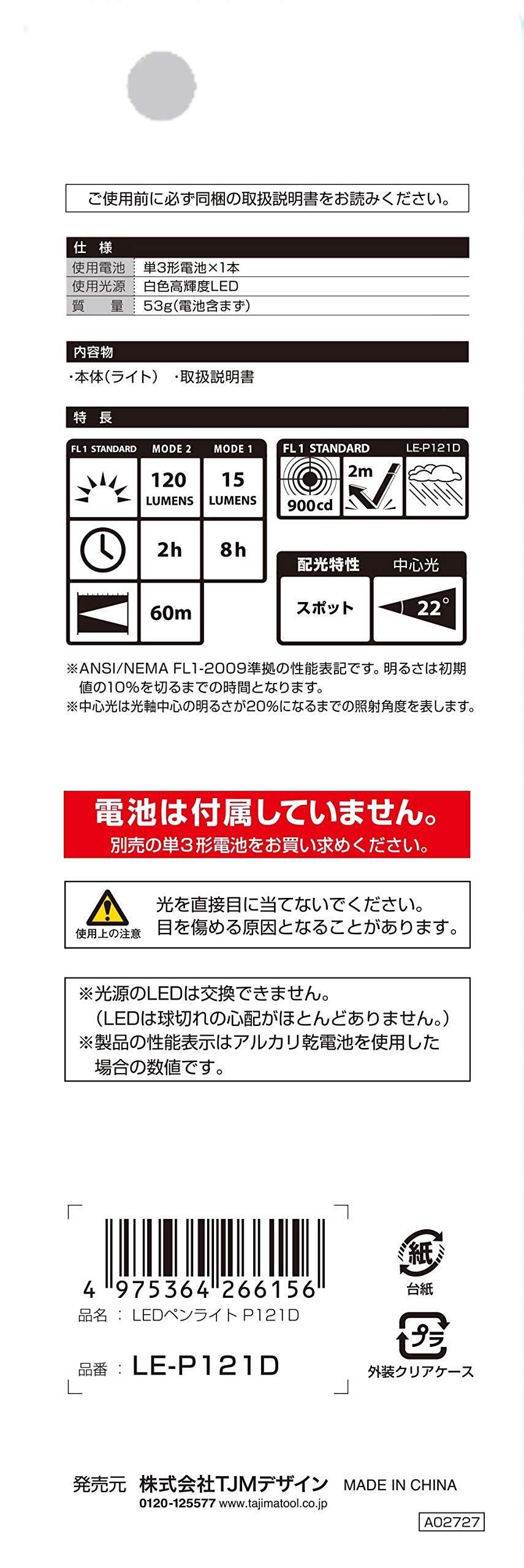 【新着商品】TJMデザイン(TJM Design)タジマ(Tajima) LEDペンライト P121D 明るさ最大120ルーメン LE-P121D