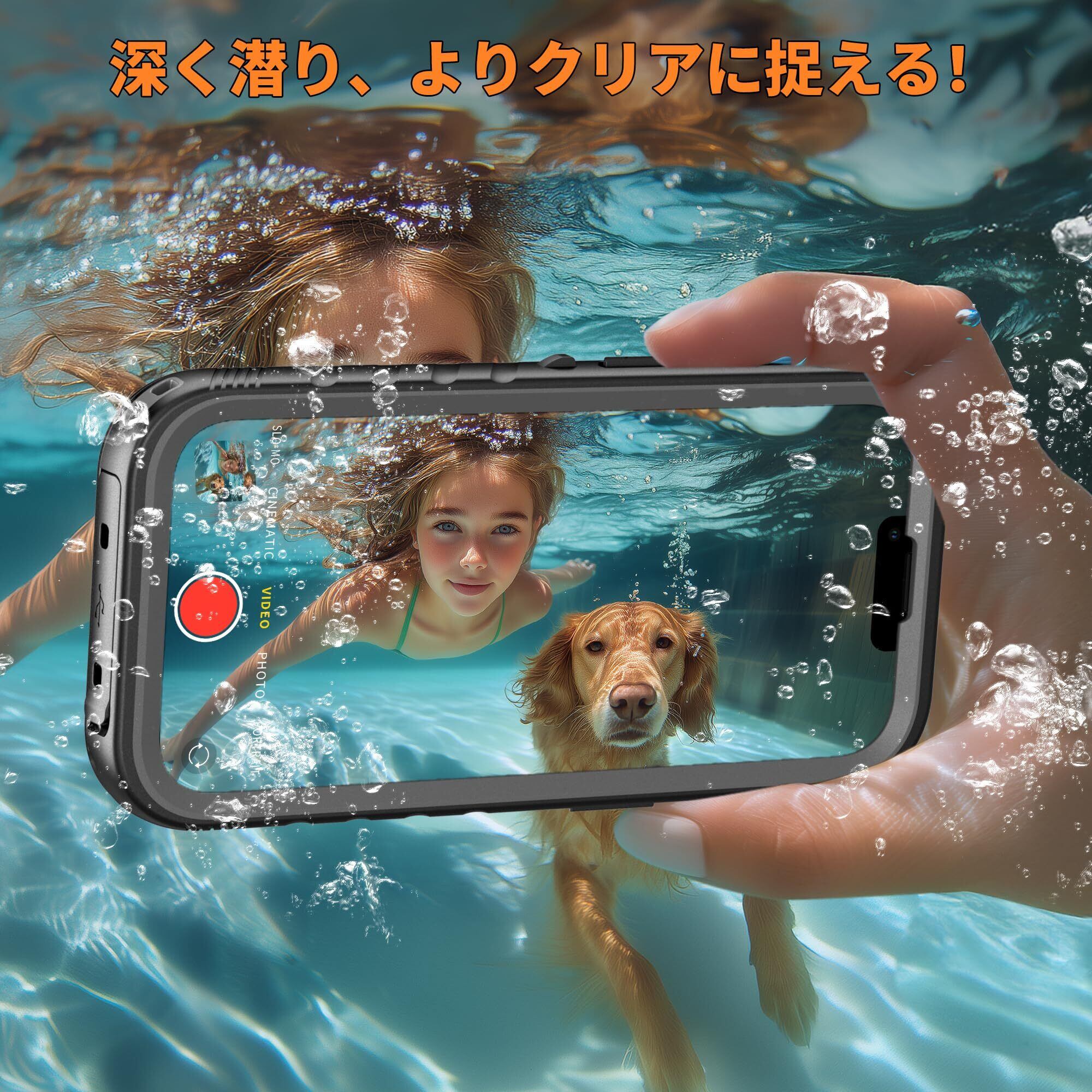 Cozycase iPhone 14 用 ケース - iPhone 14 用 防水ケース - 完全防水 防塵 2m 耐衝撃 360度 全面 両面 軽量 米軍 カメラ保護 ストラップ付き 海 お風呂 水中撮影 洗濯可能 iPhone14 用 ケース - 最強 頑丈 人気 ワイヤレス充電 アイホン14 用 ケース iPhone 14の携帯カバー「2眼レフ-6.1インチ-黒」