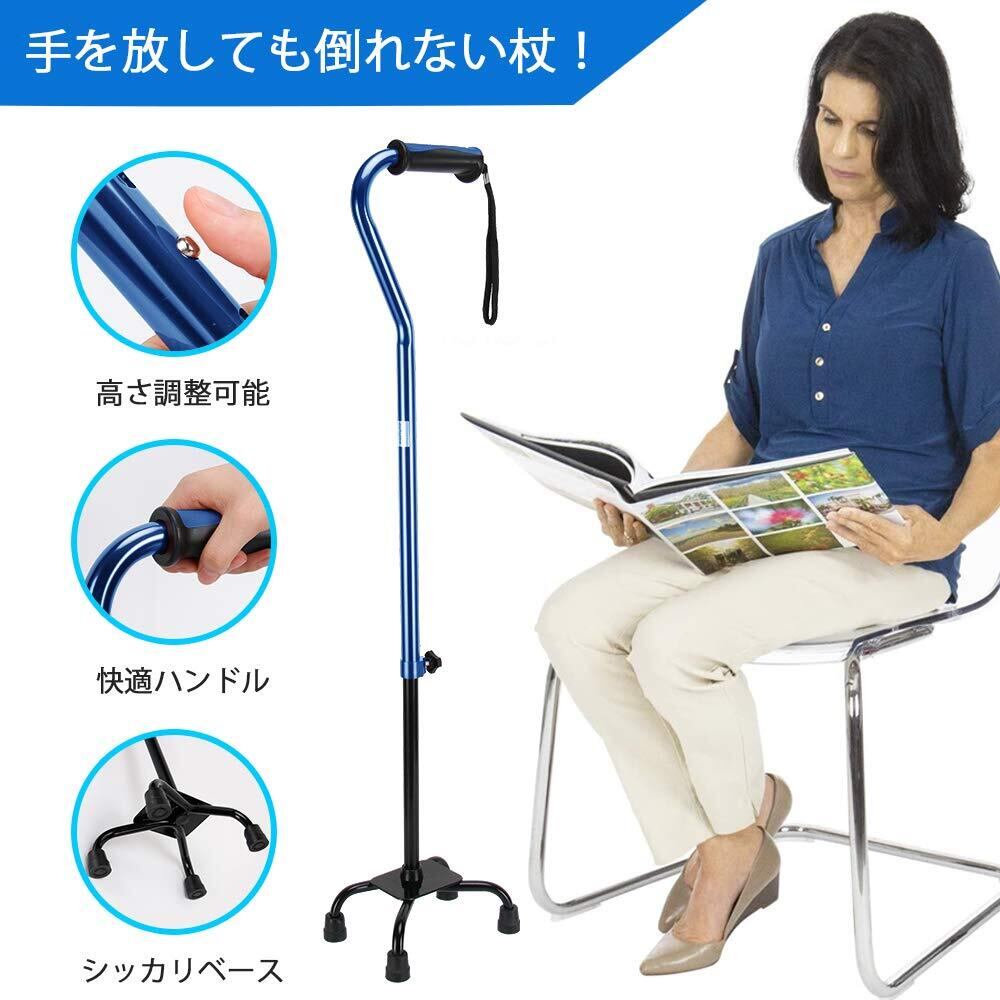 SUKONG 杖 4点 つえ 介護用 軽量 自立式 伸縮式 長さ調節可能 ステッキ 歩行補助 高齢者 リハビリ 敬老の日 (ブルー)