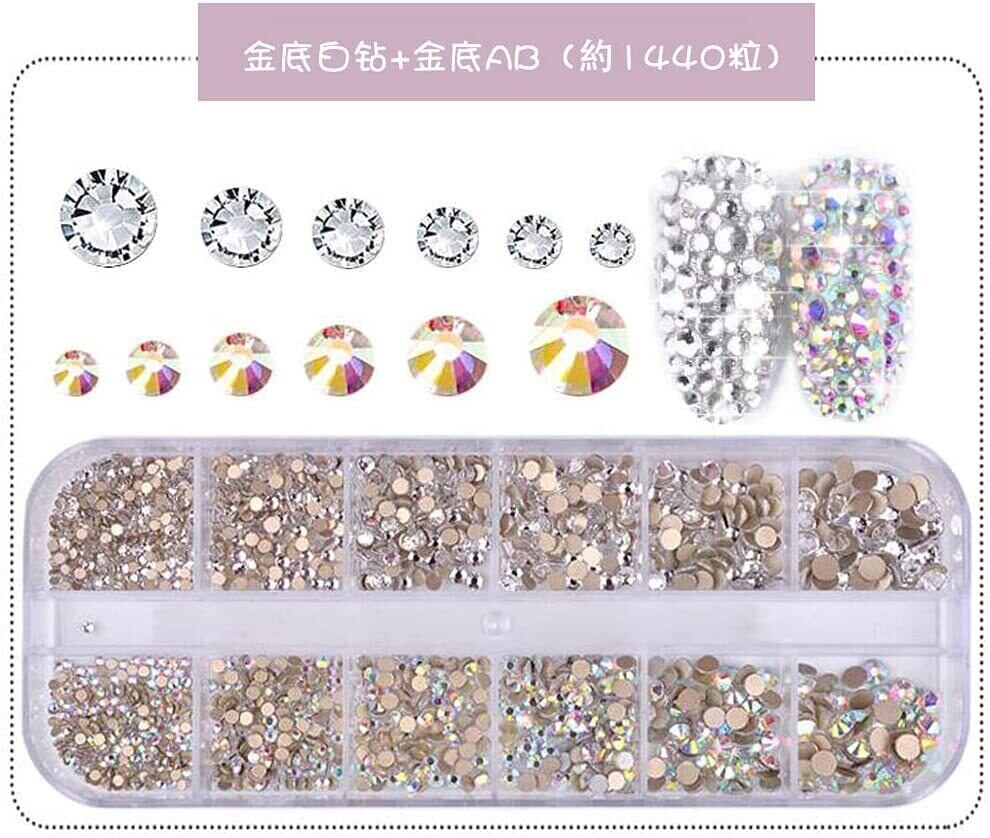 YFFSFDC ネイルアートパーツ ネイル デコ用 クリスタル ラインストーン 大容量セット DIY セルフネイル カラーラインストーン4色 ケース入 ピンセット2本付き