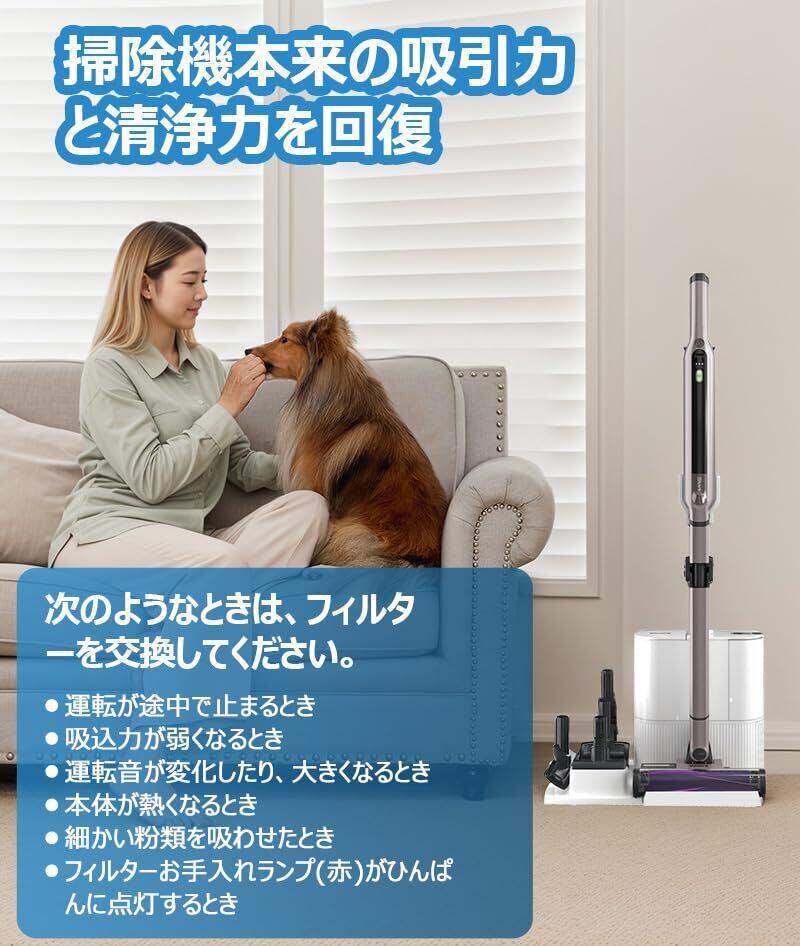 【掃除機本来の吸引力と清浄力を回復】正しいタイミングで早めにフィルターを交換することで、掃除機のモーターにかかる負担も軽減。本来の吸引・清浄性能を発揮することができます。純正フィルターと同じ性能でご利用できます。