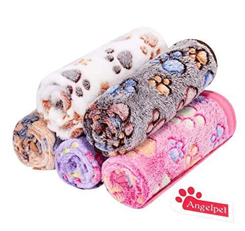 【数量限定】ペット用 ブランケット 毛布 犬猫 マット タオル ソフト 秋冬の防寒 保温 洗える サンゴフリース 可愛い肉球柄 Angelpet (S,5枚セット)