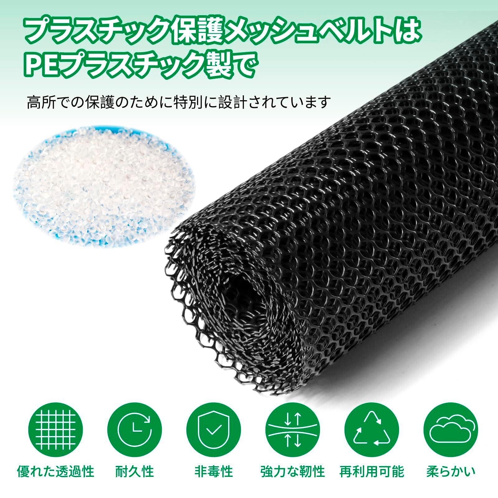 【製品サイズ】製品セットには、メッシュ径8mmの幅0.4メートル、長さ5メートルの保護ネットと、製品の柔軟性を高め、さまざまな状況に容易に対応できる十分な長さの15CMフィールドストラップが30本含まれています。いつでも必要です。