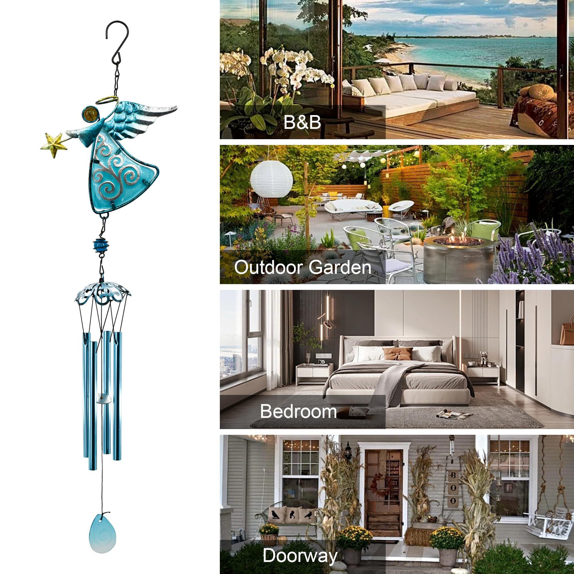 MrMrKura 風鈴 エンジェル 天使風鈴 金属 ウインドチャイム 玄関 吊り下げ 庭 屋外用 エンジェルウインドチャイム 工芸装飾用風鈴 インテリア 飾り 手作り風鈴 屋内装飾 4本パイプ (青)